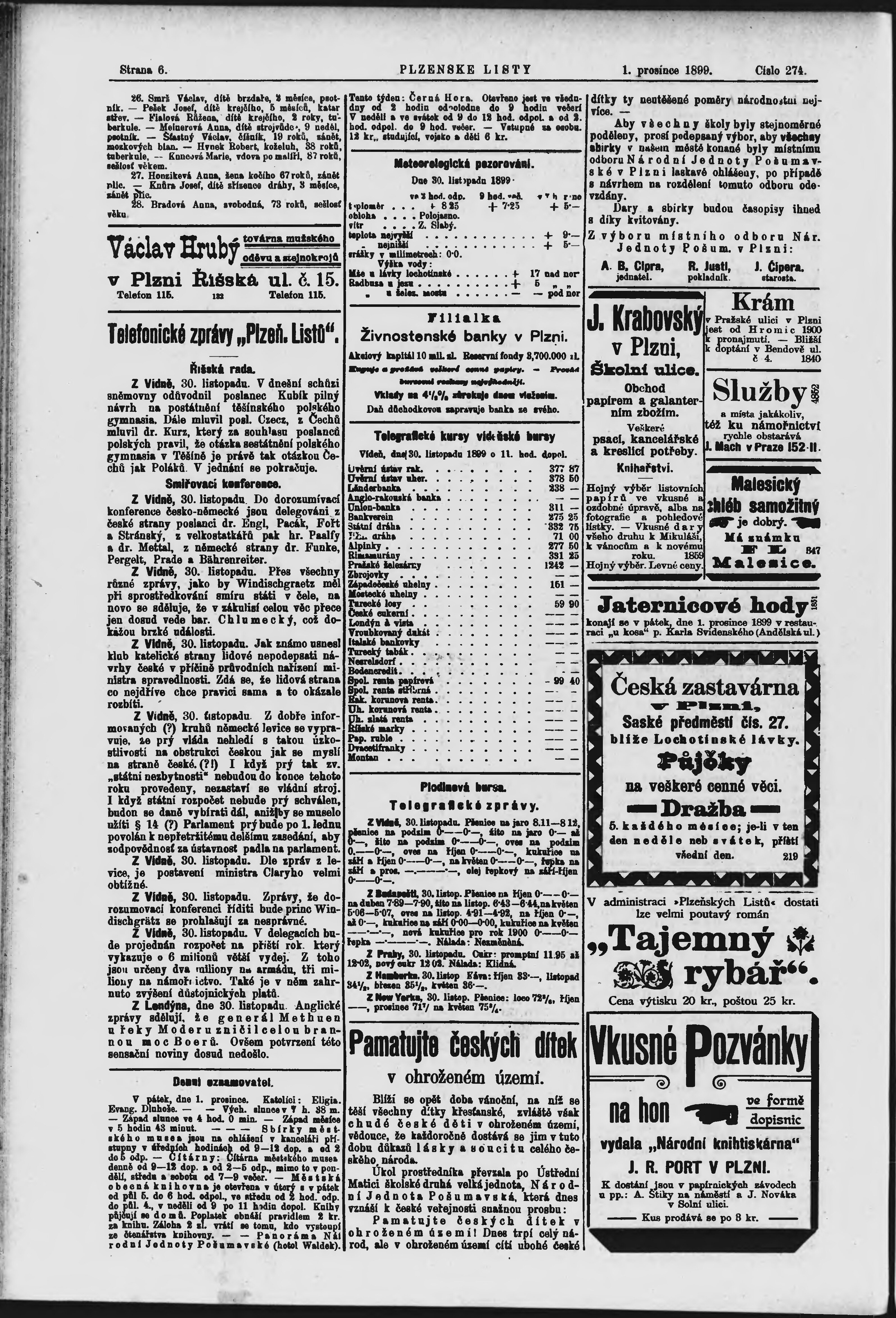 * Datum vydání výtisku: 1.12.1899 Číslo výtisku: 274