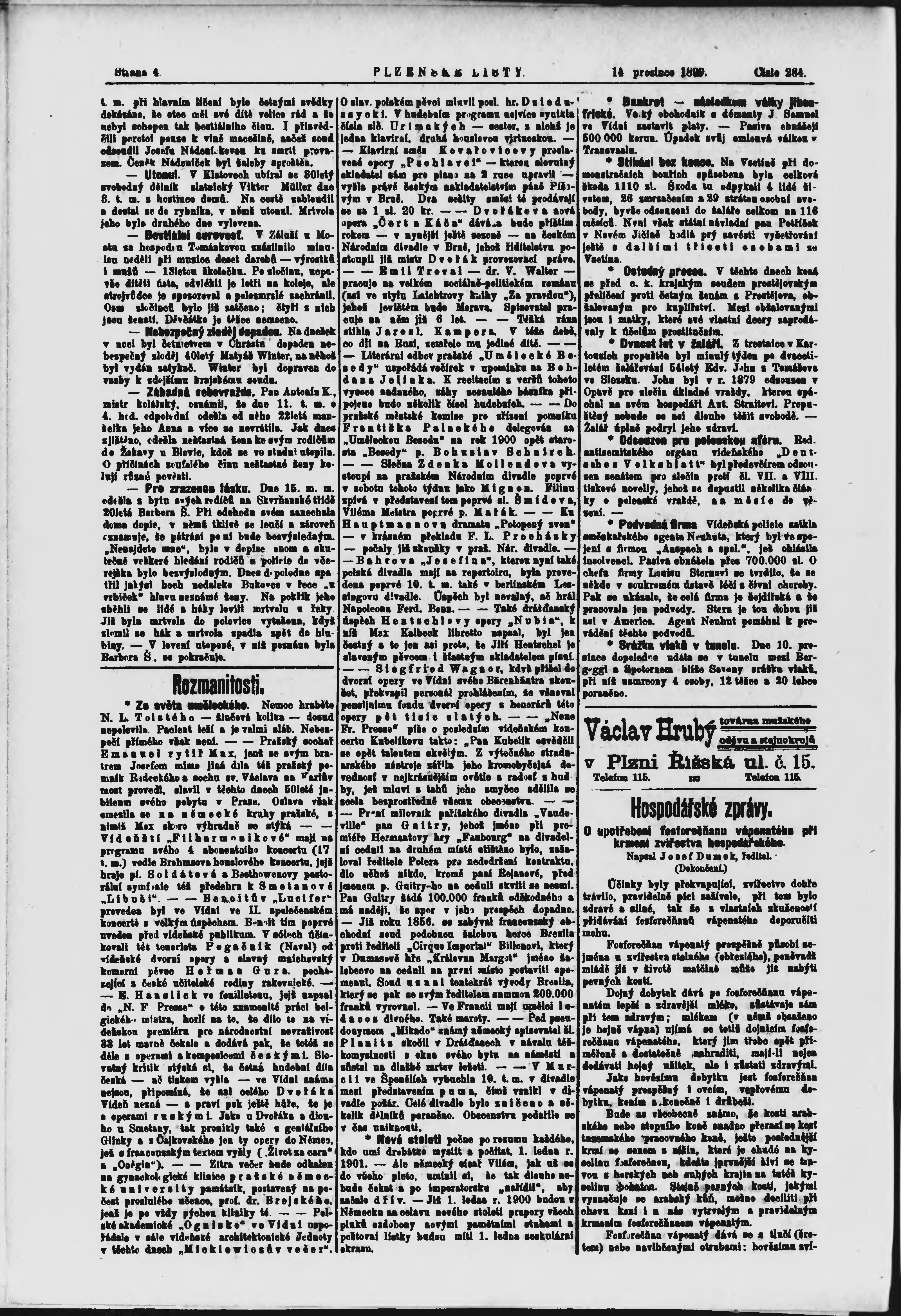 * Datum vydání výtisku: 14.12.1899 Číslo výtisku: 284