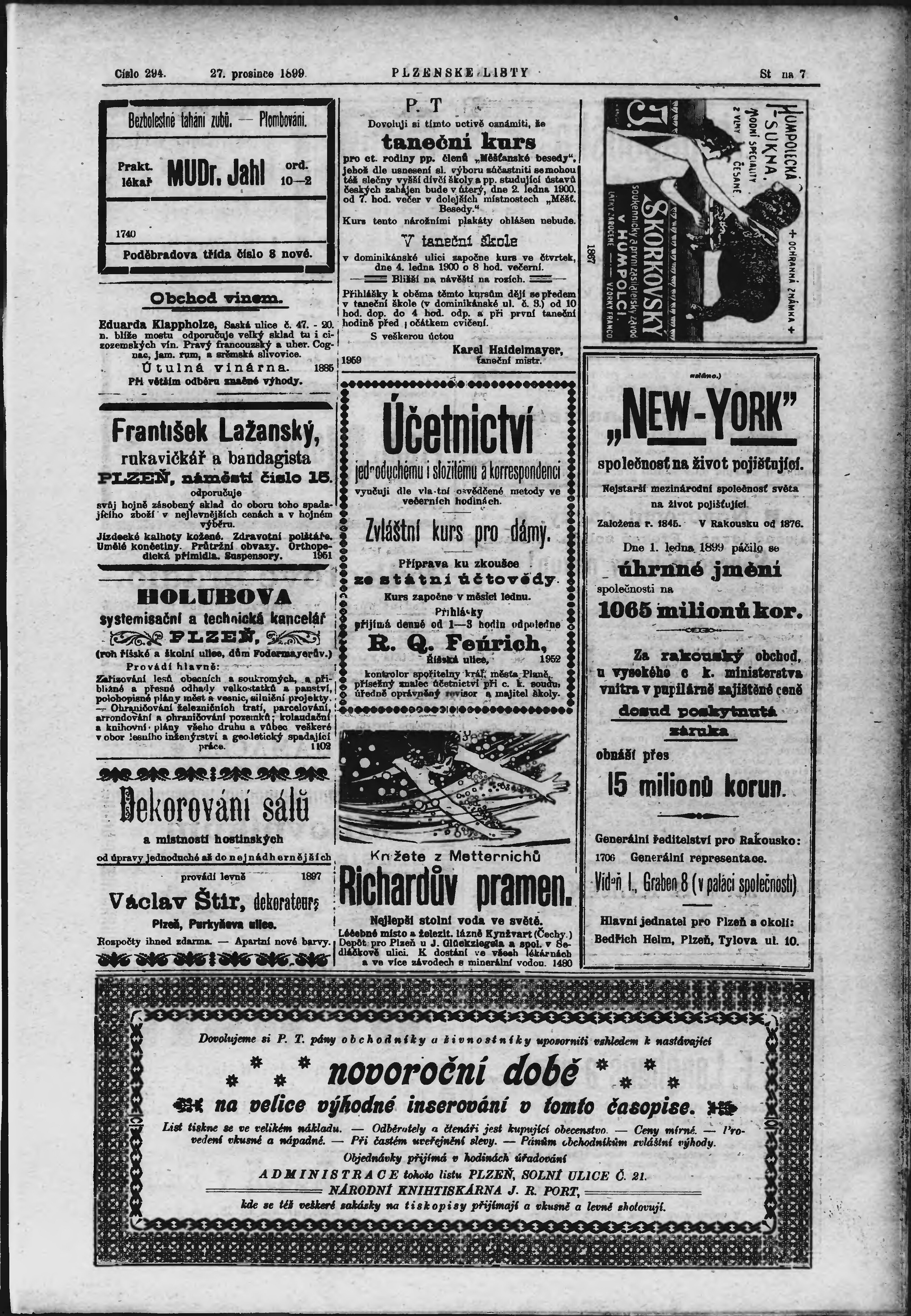 * Datum vydání výtisku: 27.12.1899 Číslo výtisku: 294