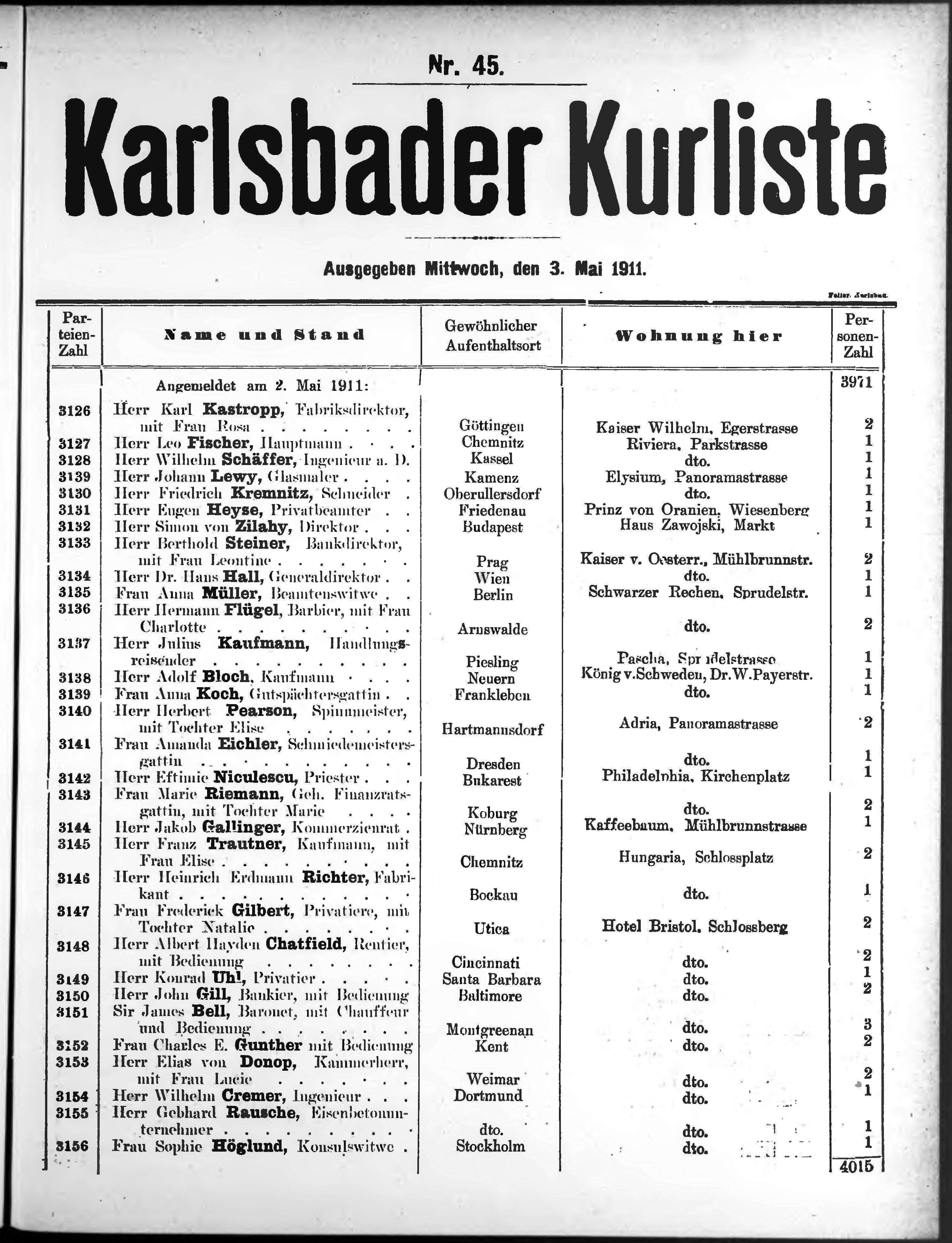 Liste der im Jahre ... angekommenen und abgereisten Kur- und Badegäste in Karlsb...