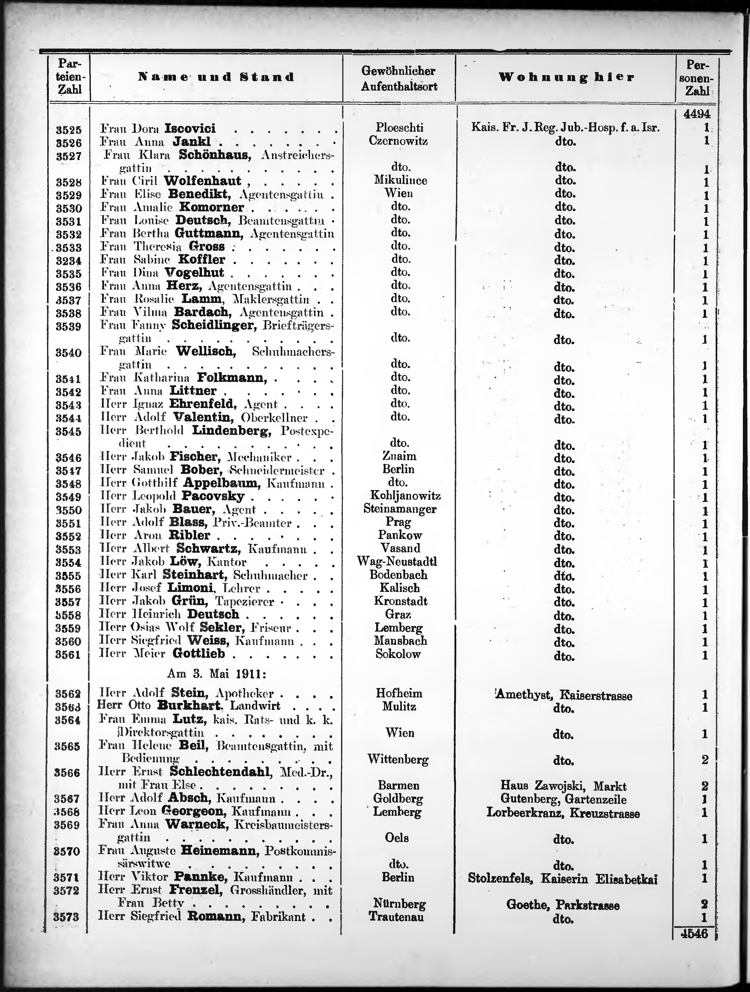 Liste der im Jahre ... angekommenen und abgereisten Kur- und Badegäste in Karlsb...