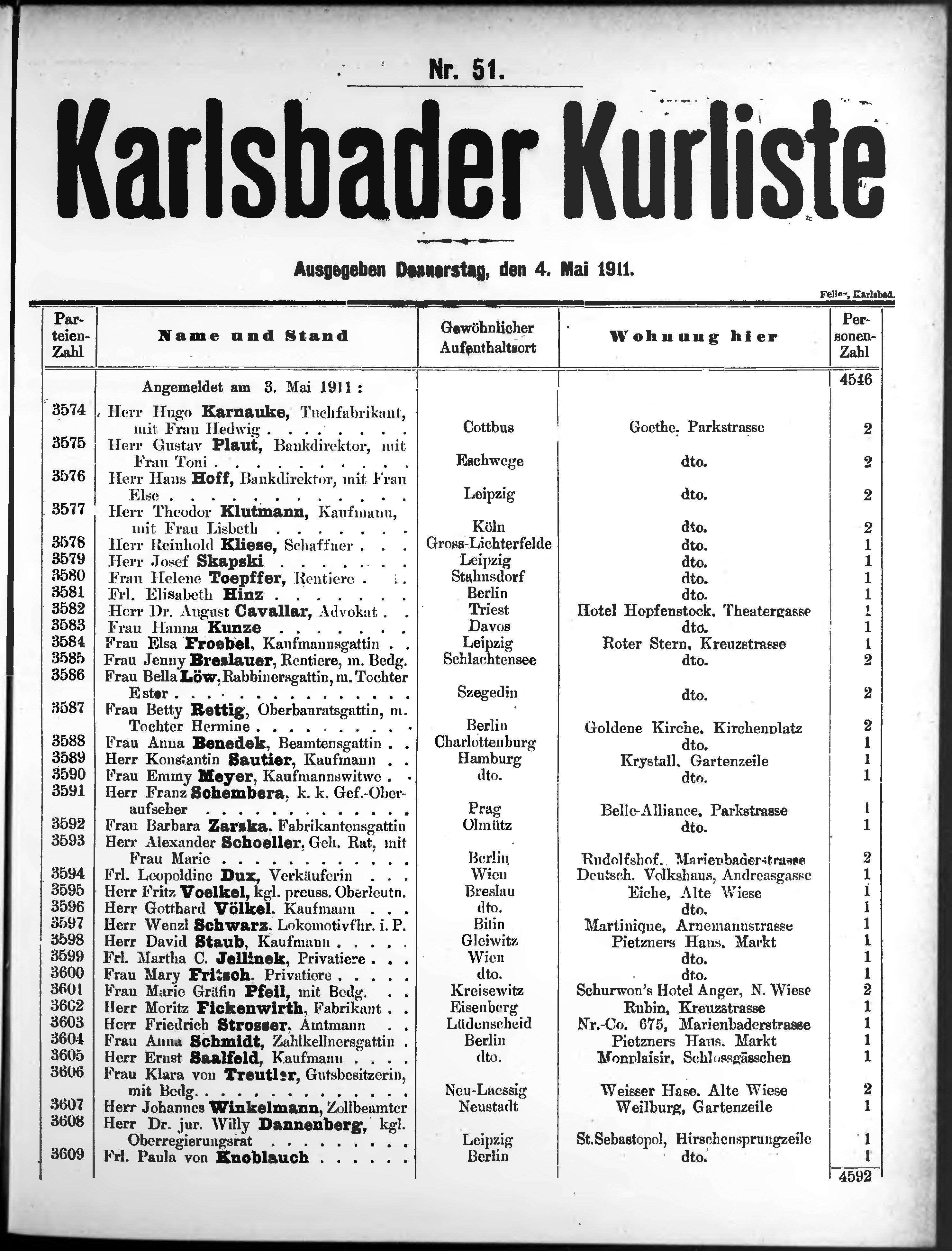 Liste der im Jahre ... angekommenen und abgereisten Kur- und Badegäste in Karlsb...