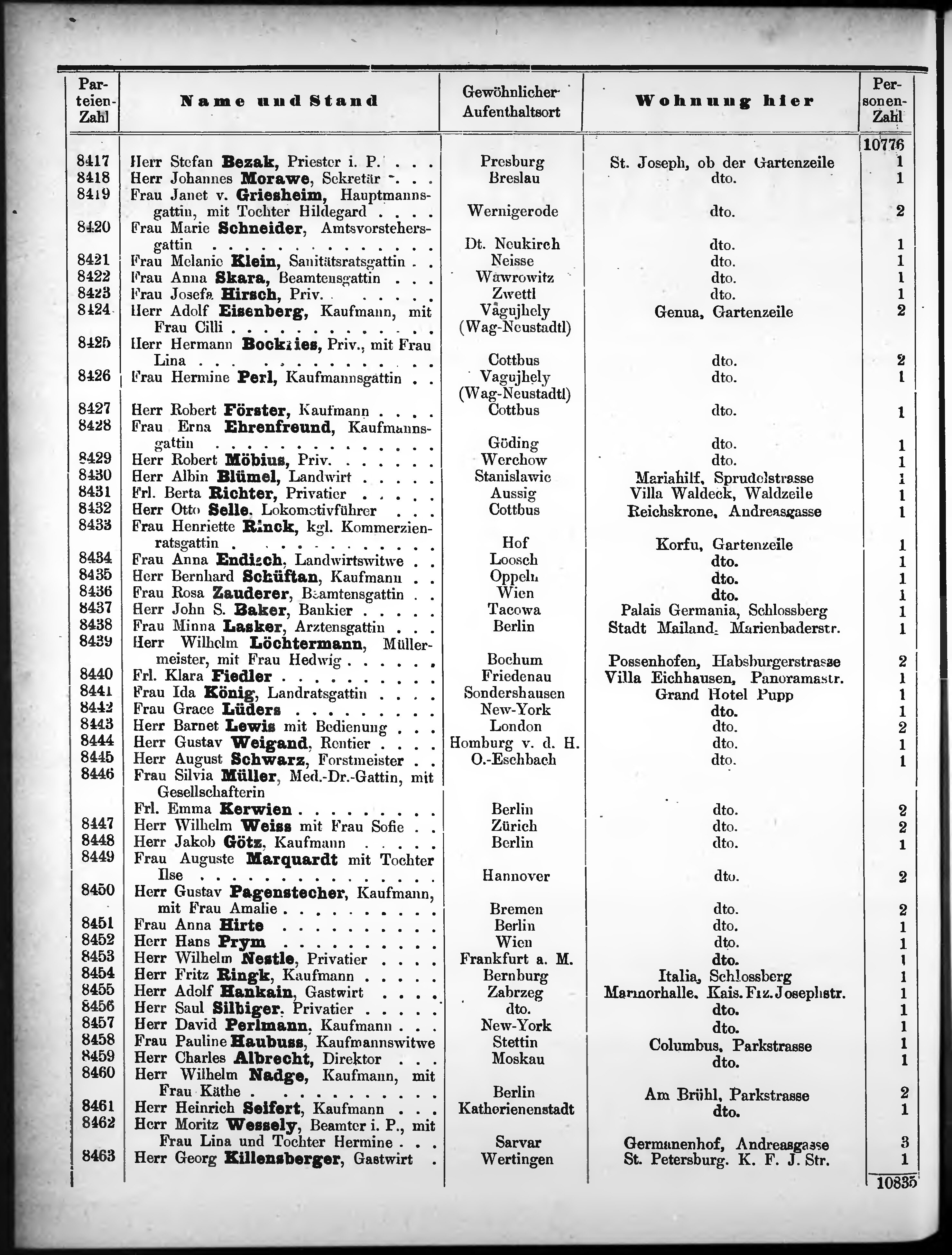 Liste der im Jahre ... angekommenen und abgereisten Kur- und Badegäste in Karlsb...