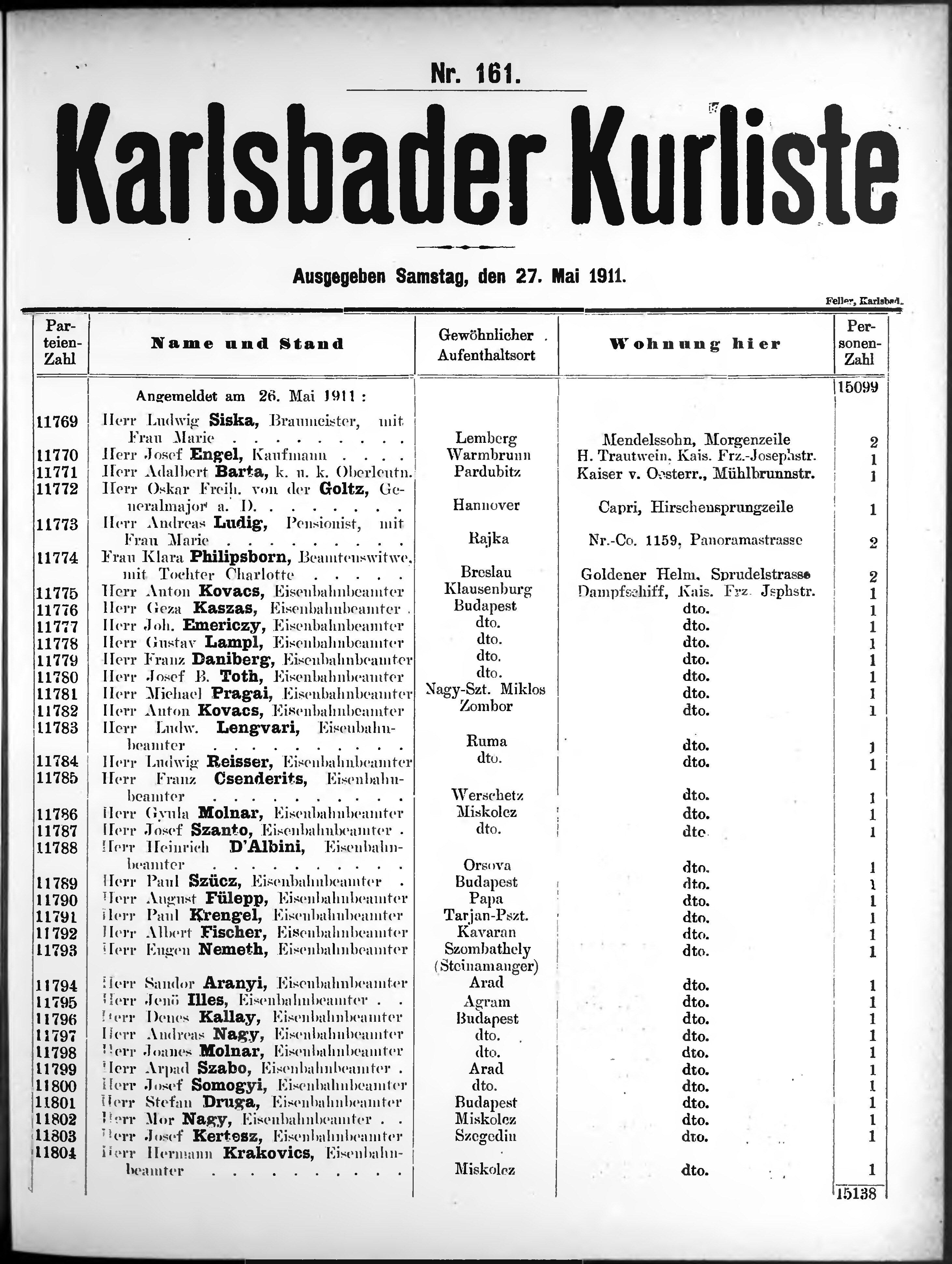 * Datum vydání výtisku: 27.5.1911 Číslo výtisku: 161