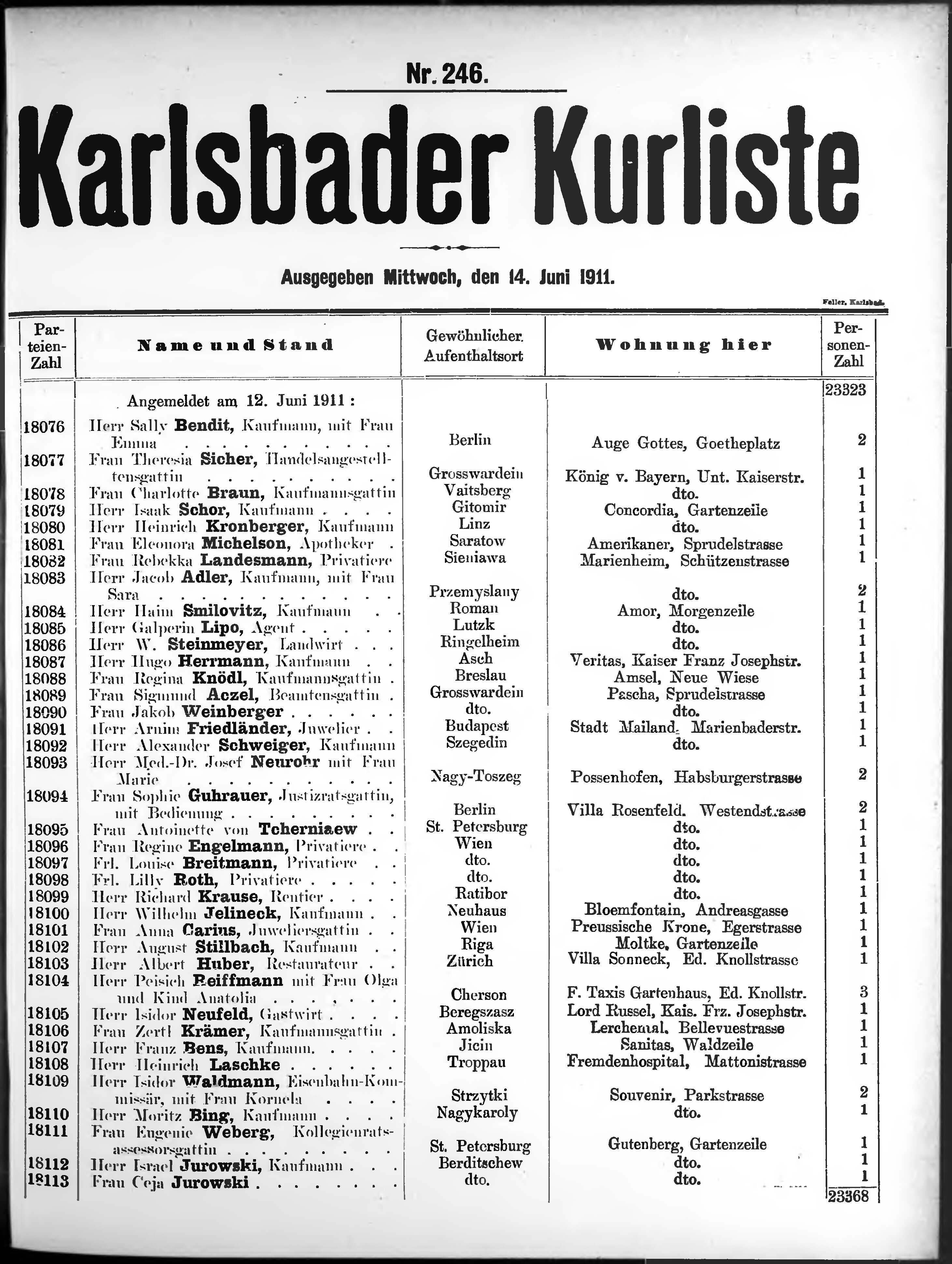 * Datum vydání výtisku: 14.6.1911 Číslo výtisku: 246