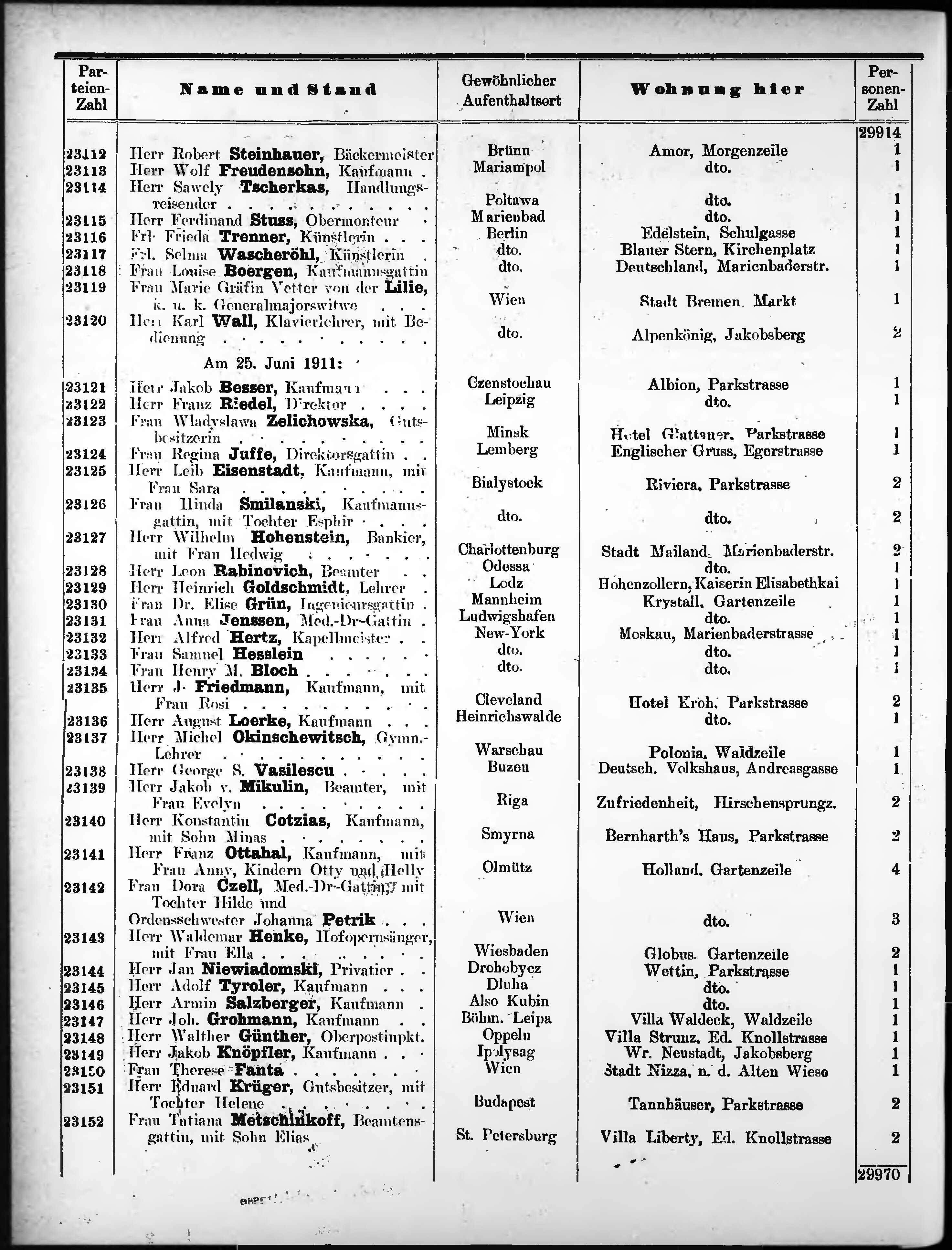 Liste der angekommenen und abgereisten P. T. Curgäste in Carlsbad im Jahre