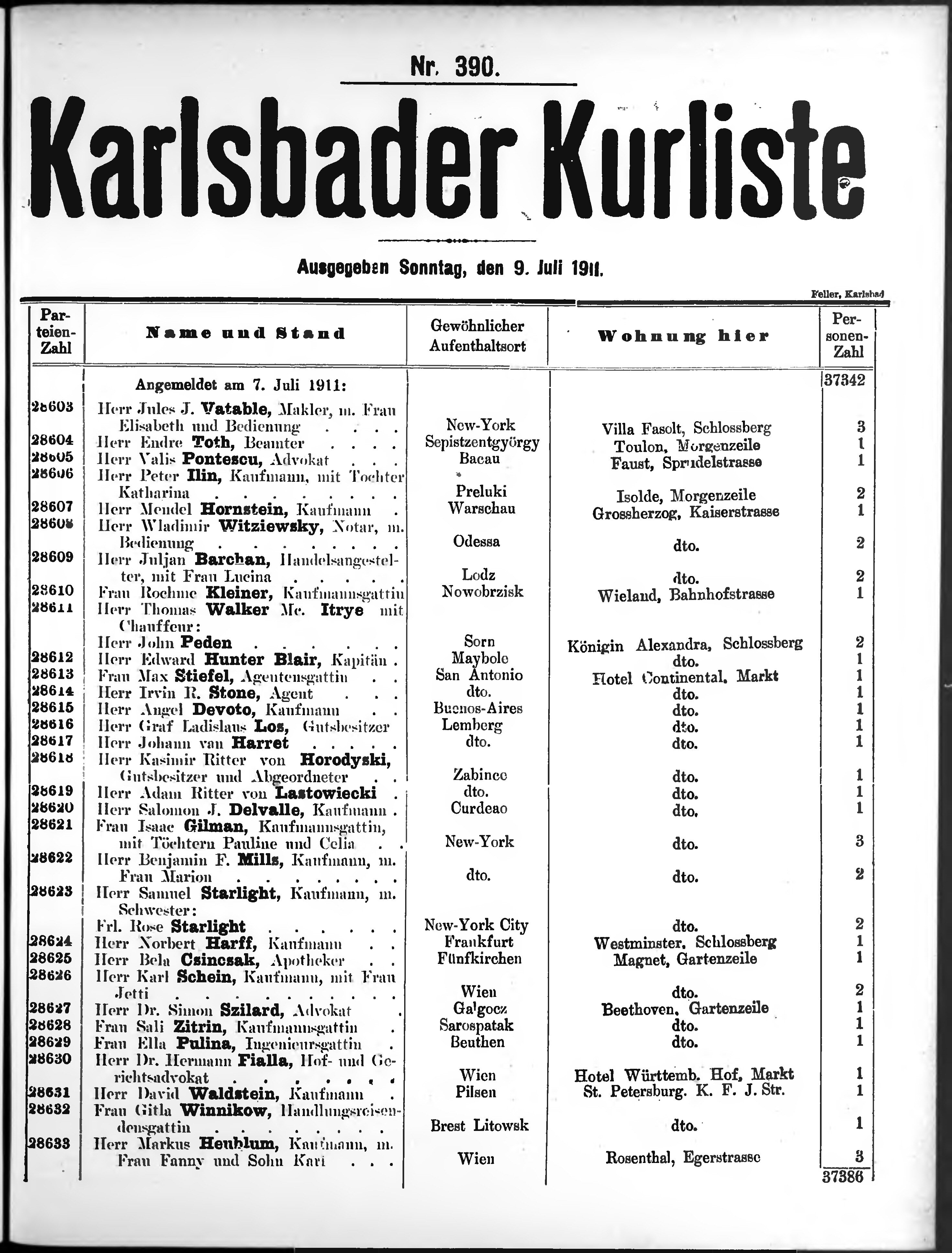 Liste der im Jahre ... angekommenen und abgereisten Kur- und Badegäste in Karlsb...