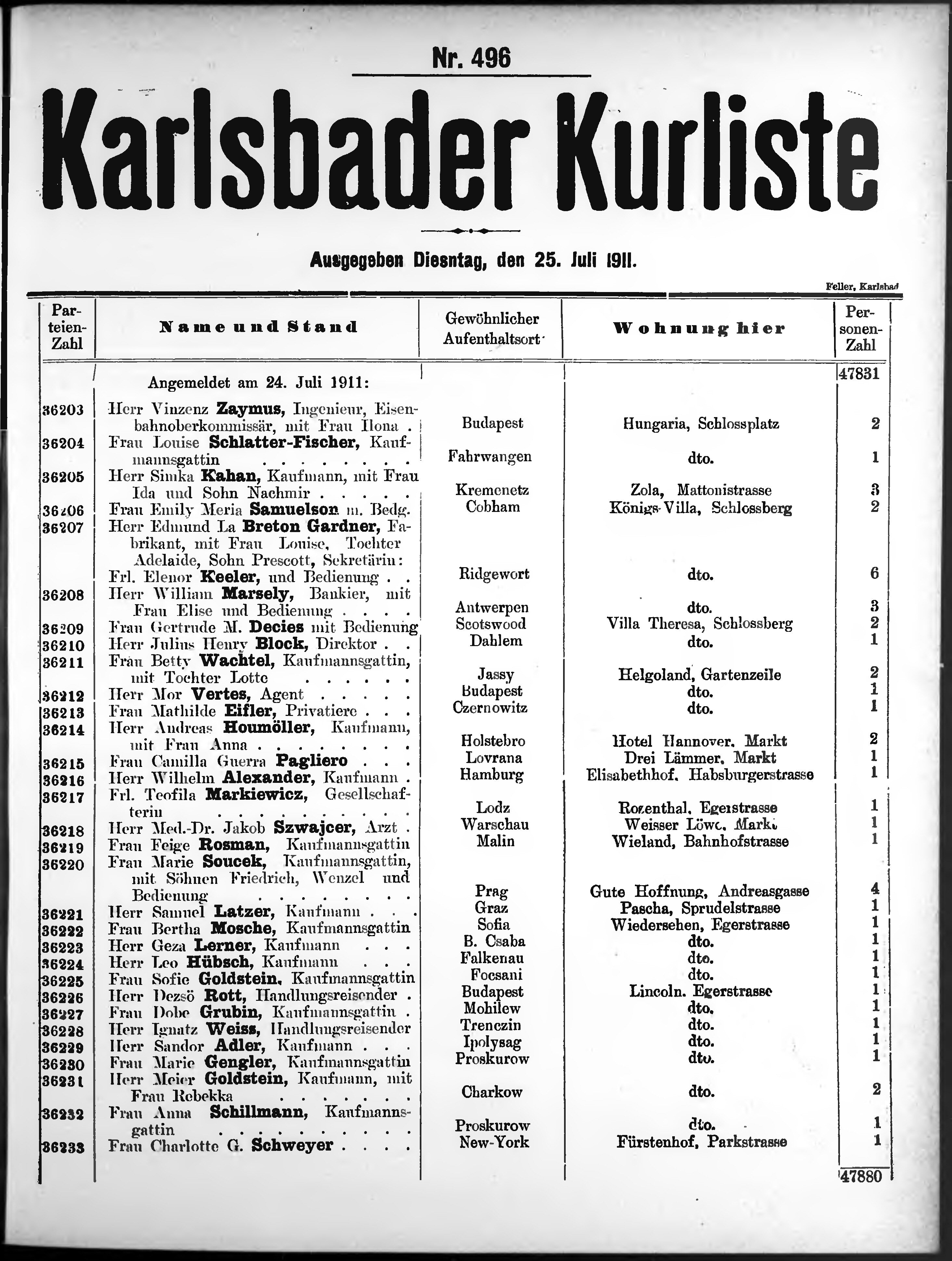Liste der im Jahre ... angekommenen und abgereisten Kur- und Badegäste in Karlsb...