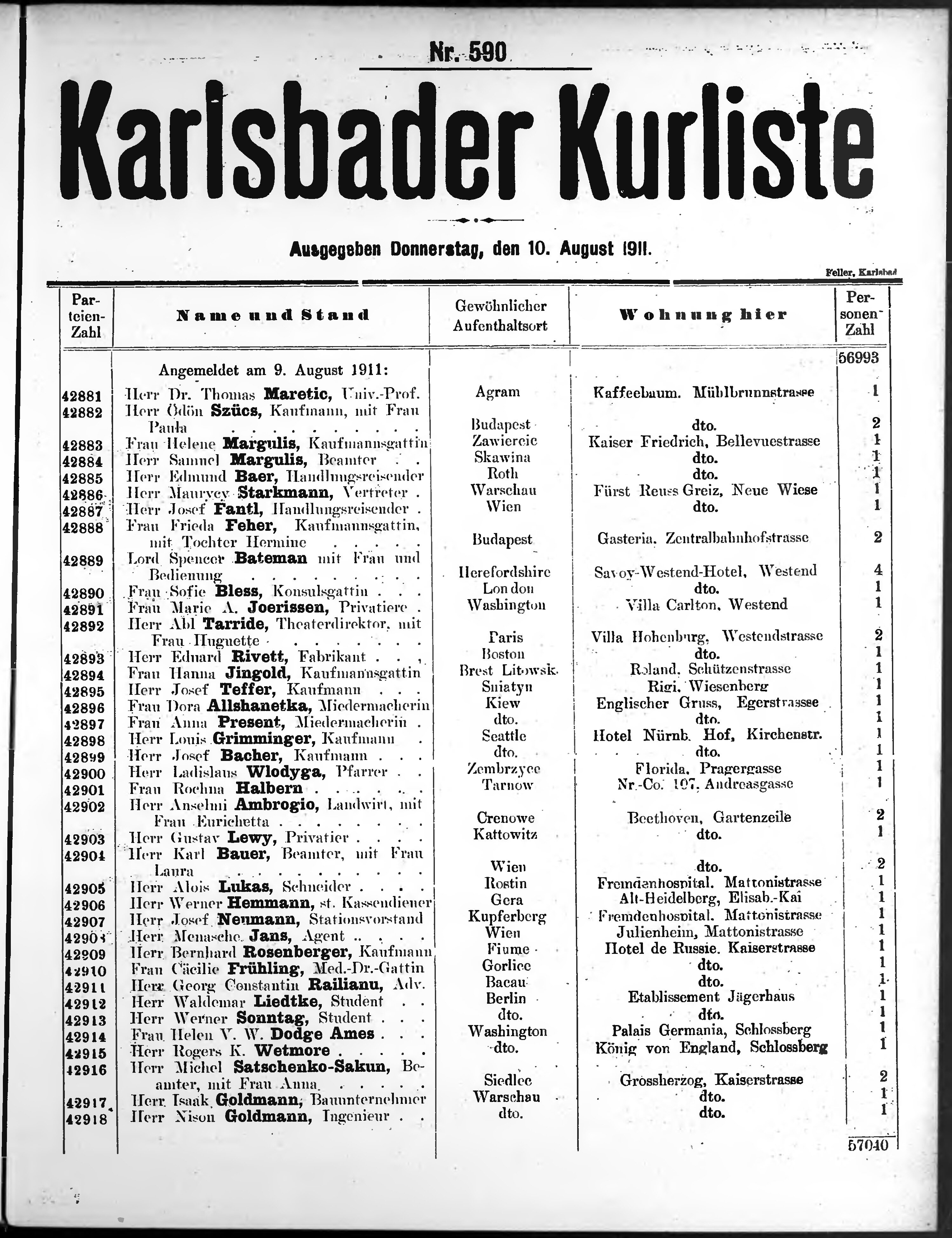 Liste der im Jahre ... angekommenen und abgereisten Kur- und Badegäste in Karlsb...