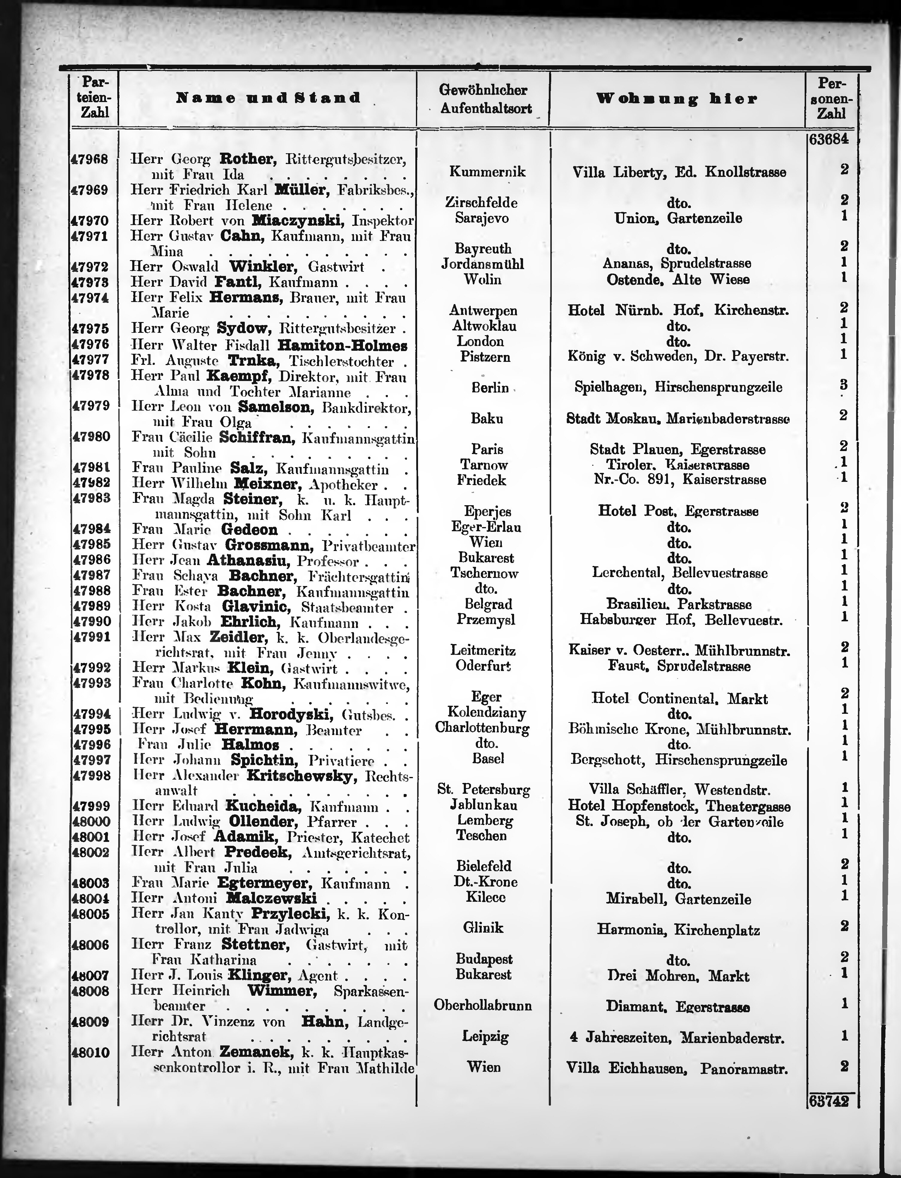 Liste der im Jahre ... angekommenen und abgereisten Kur- und Badegäste in Karlsb...