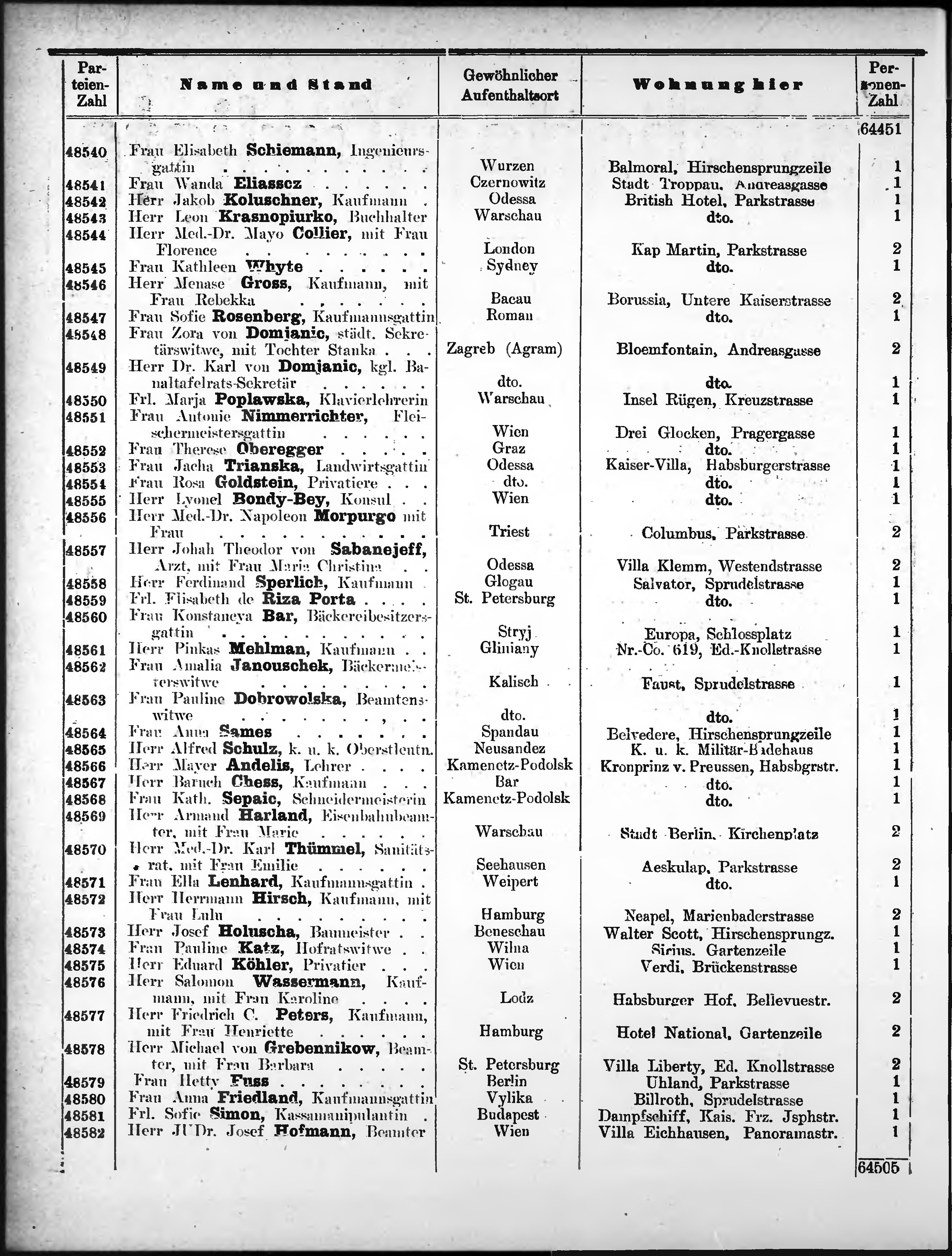 Liste der im Jahre ... angekommenen und abgereisten Kur- und Badegäste in Karlsb...