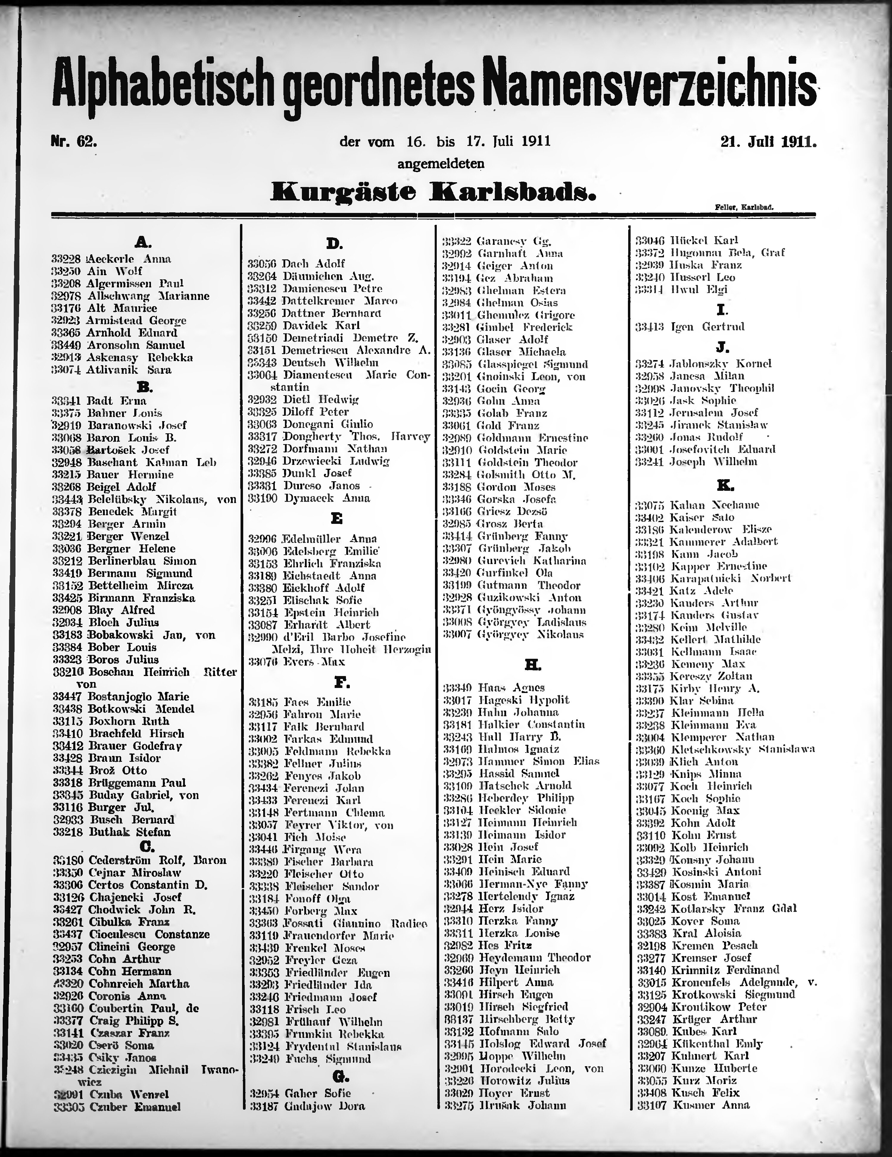 Liste der im Jahre ... angekommenen und abgereisten Kur- und Badegäste in Karlsb...