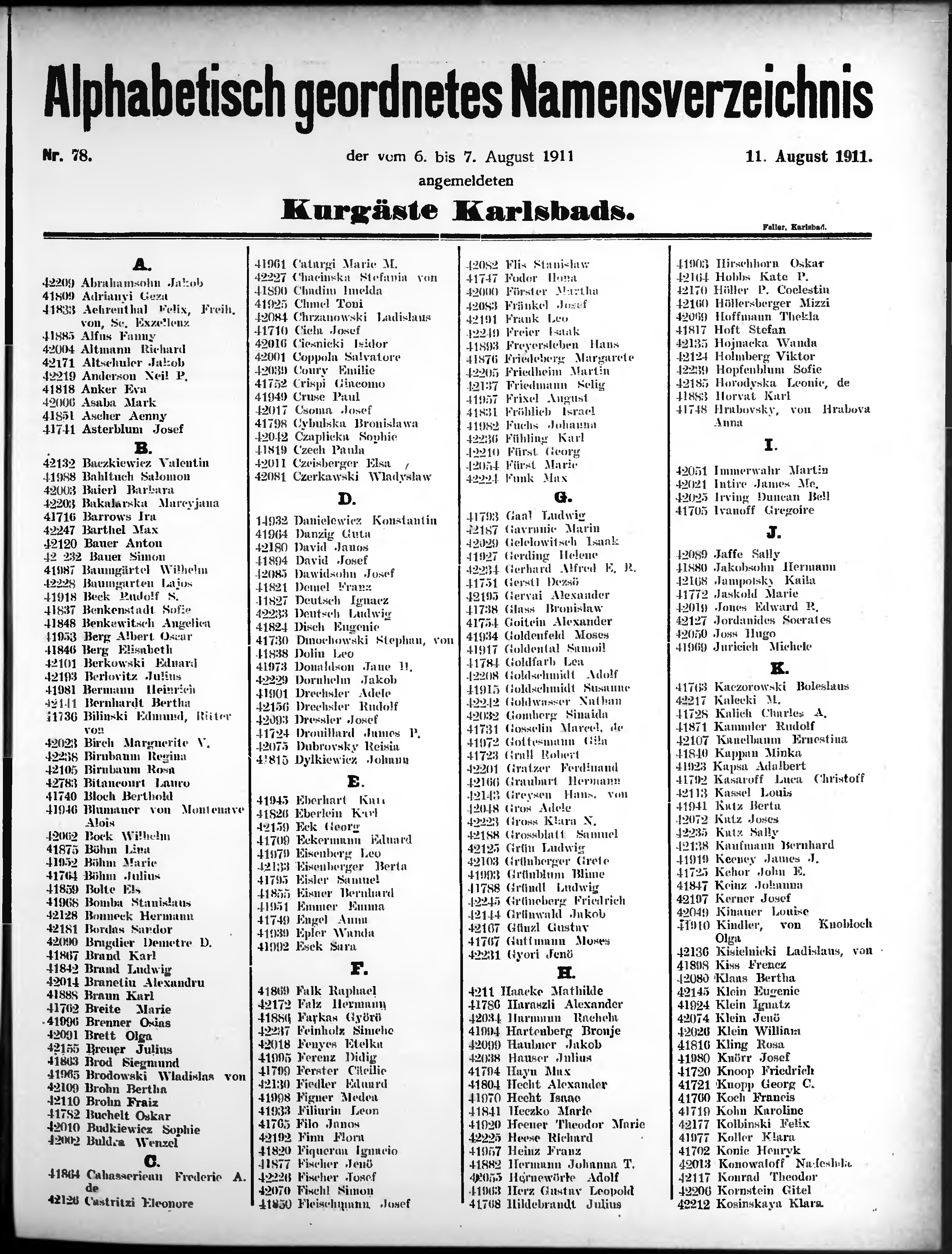 Liste der im Jahre ... angekommenen und abgereisten Kur- und Badegäste in Karlsb...