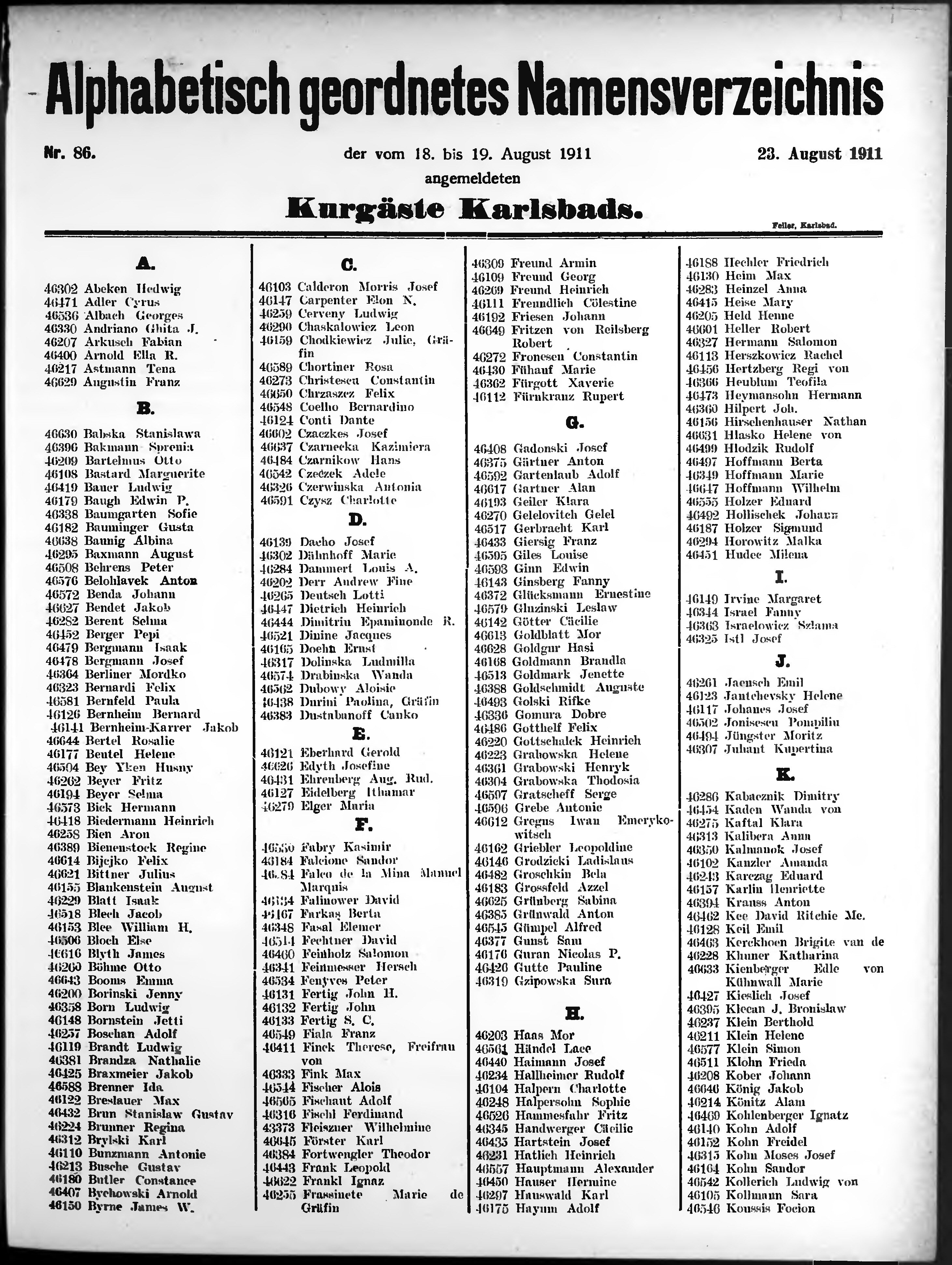 Liste der im Jahre ... angekommenen und abgereisten Kur- und Badegäste in Karlsb...