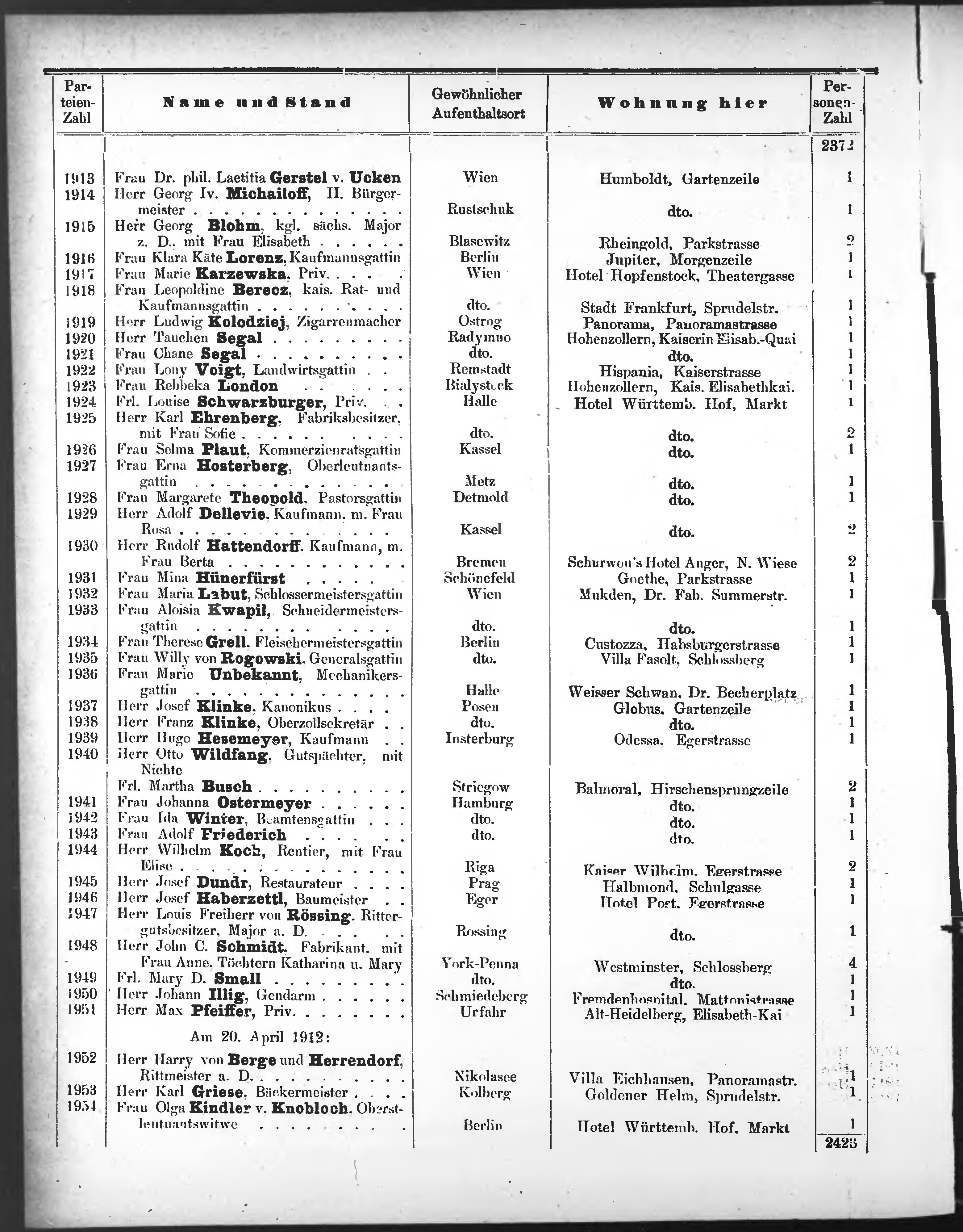 Liste der P.T. Curgäste in Carlsbad ...