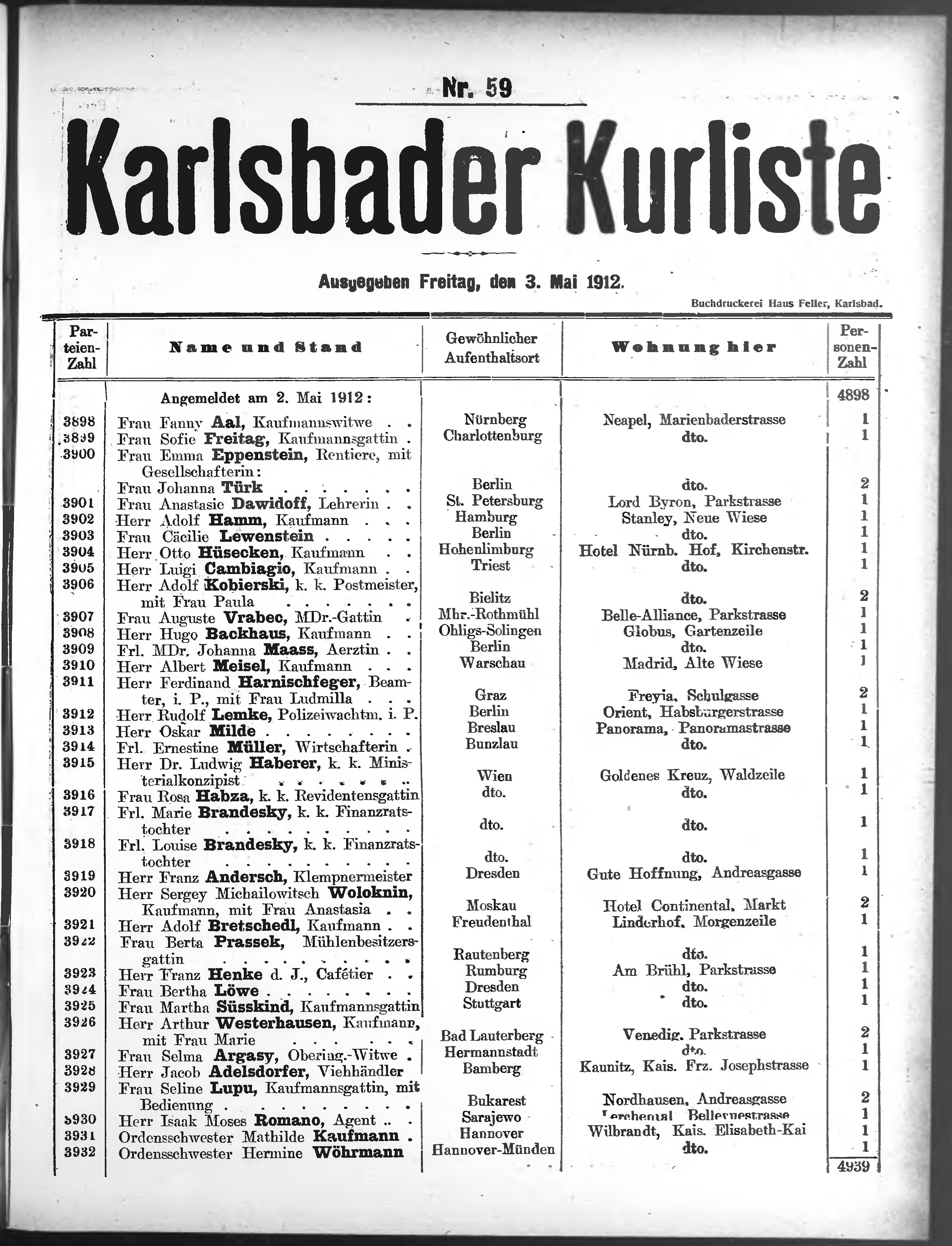Liste der P.T. Curgäste in Carlsbad ...