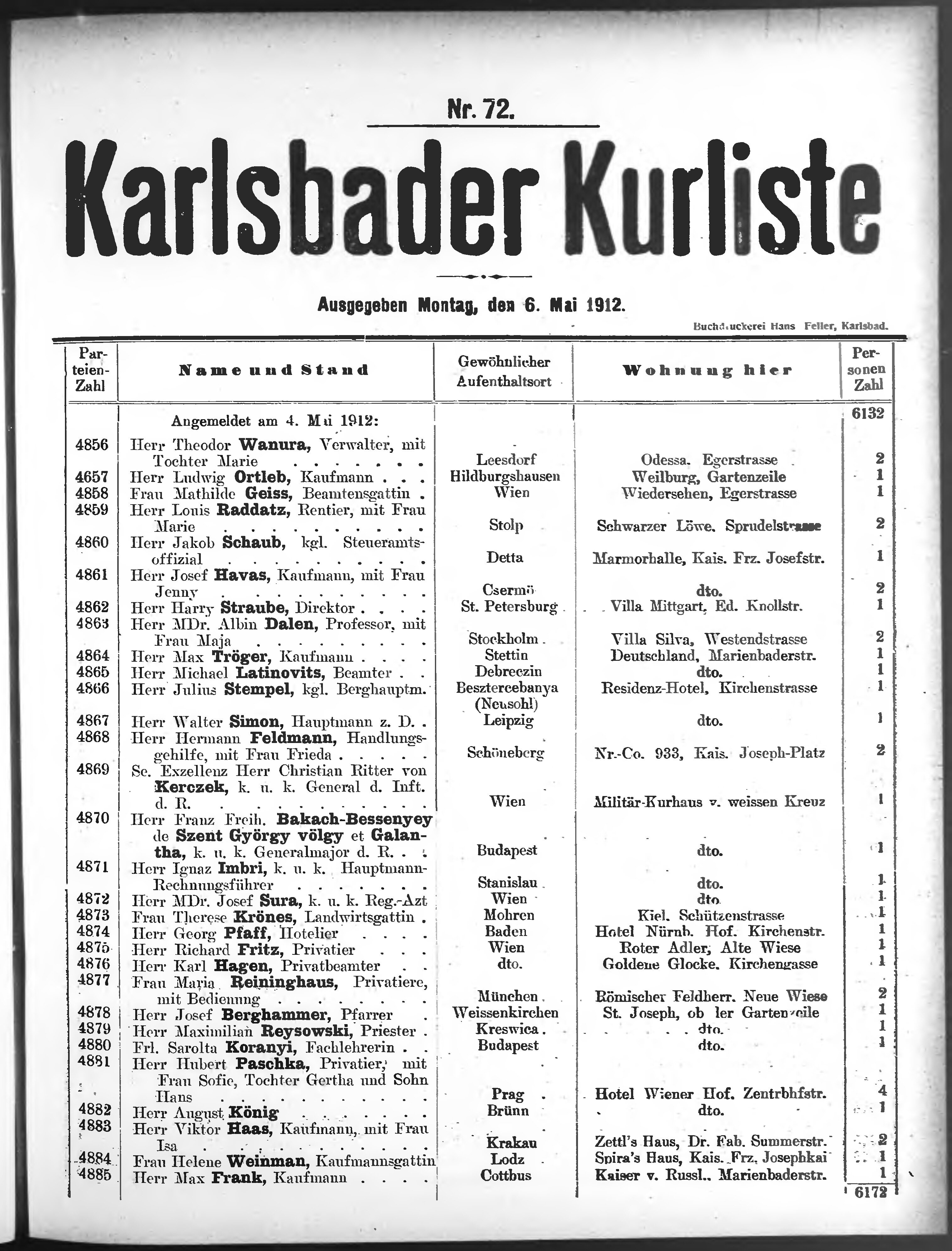 Liste der P.T. Curgäste in Carlsbad ...