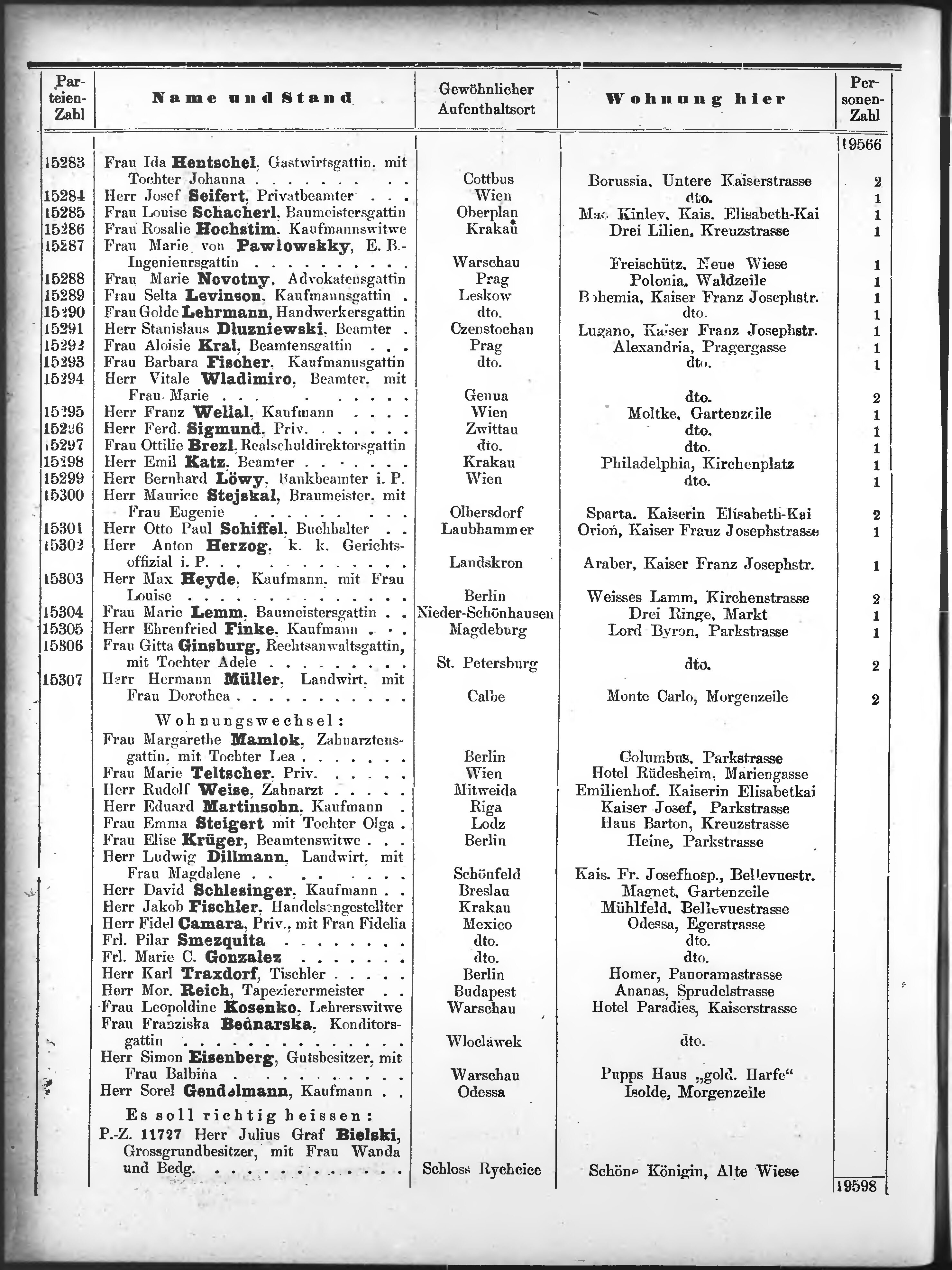 Liste der P.T. Curgäste in Carlsbad ...