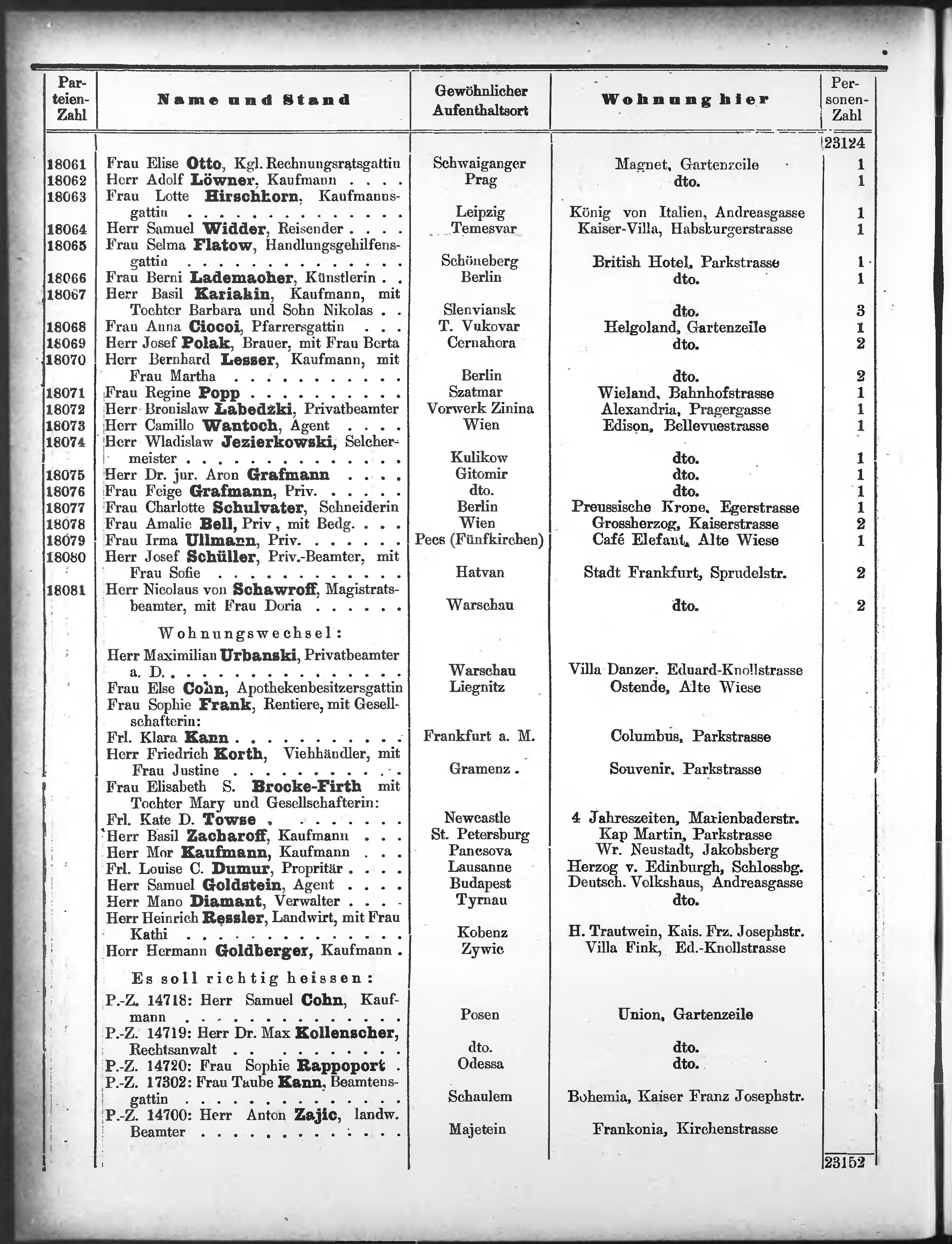 Liste der P.T. Curgäste in Carlsbad ...
