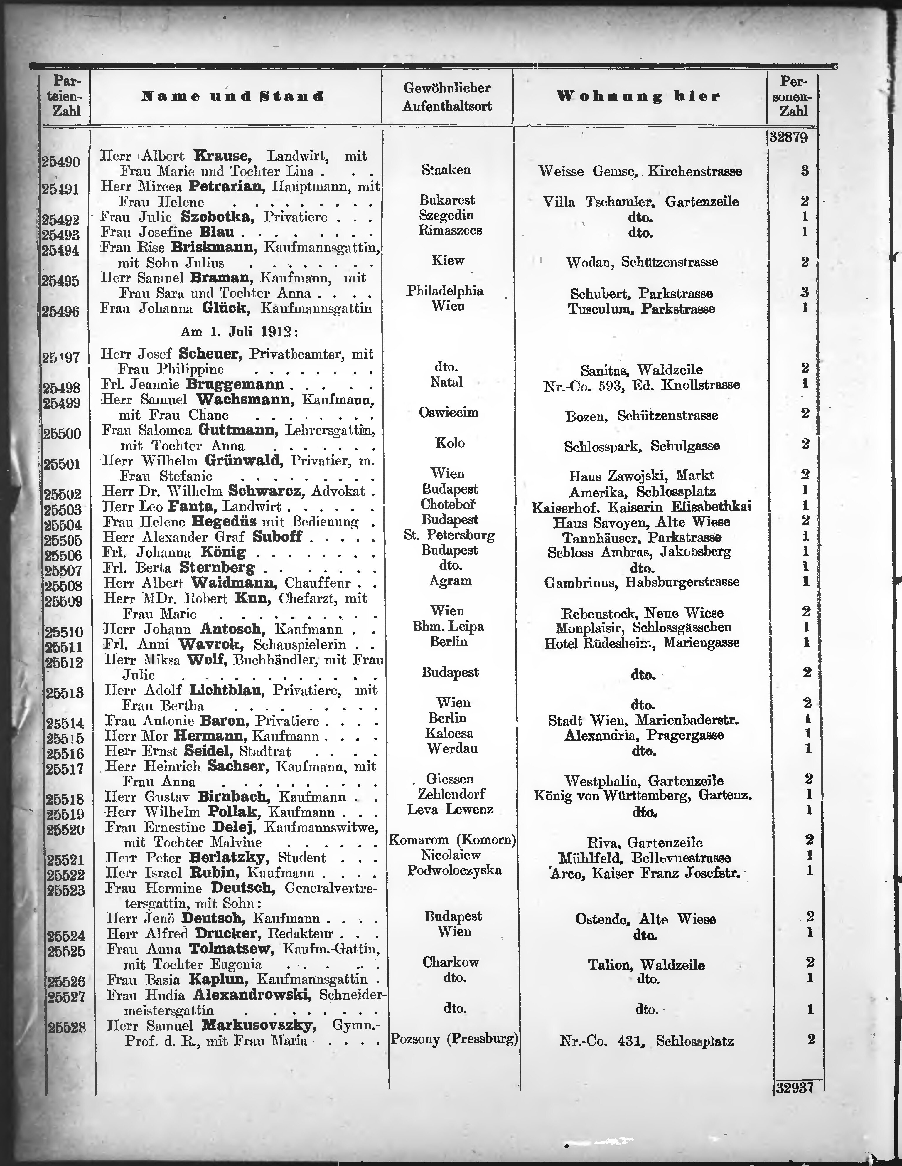 Liste der angekommenen und abgereisten P. T. Curgäste in Carlsbad im Jahre