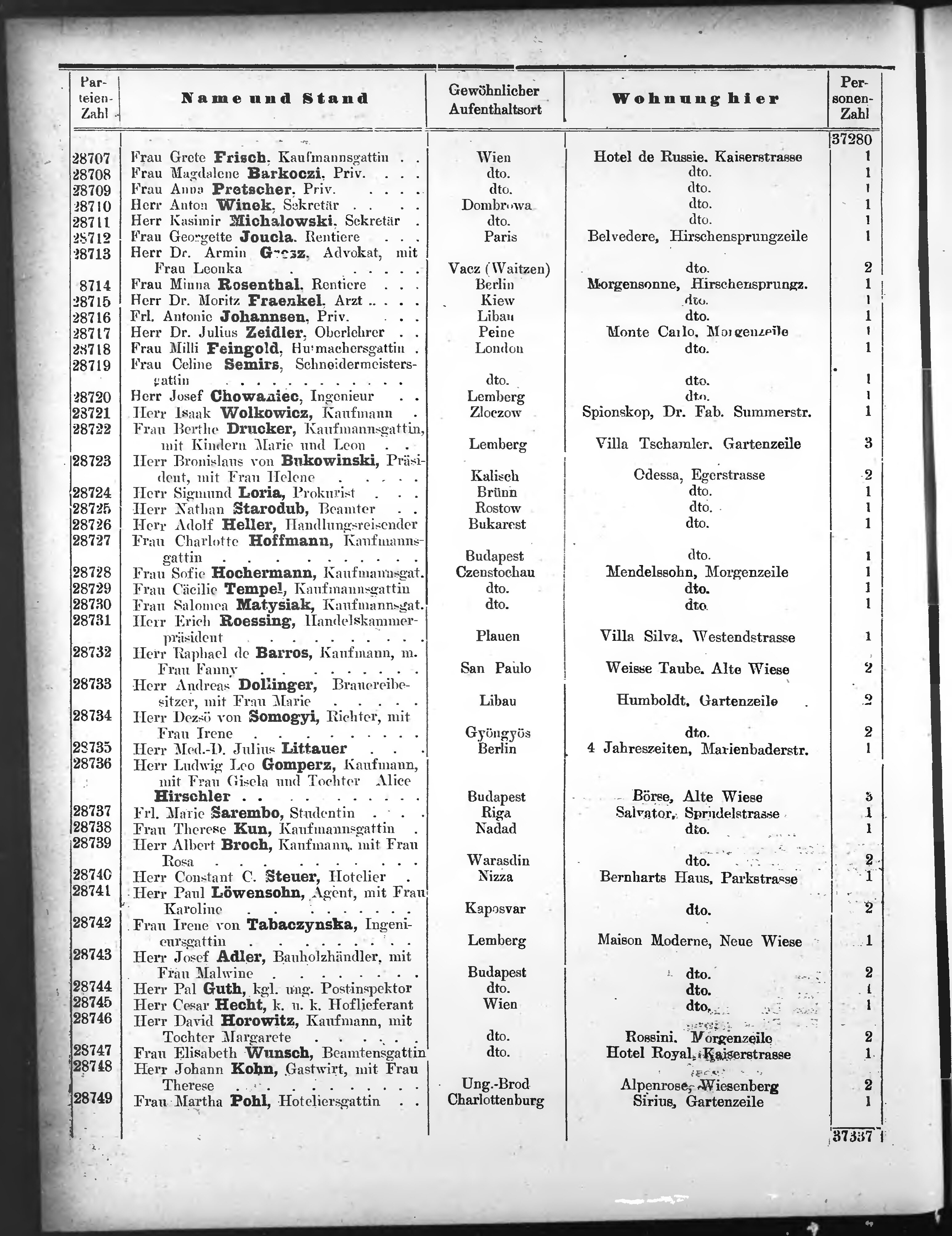 Liste der angekommenen und abgereisten P. T. Curgäste in Carlsbad im Jahre
