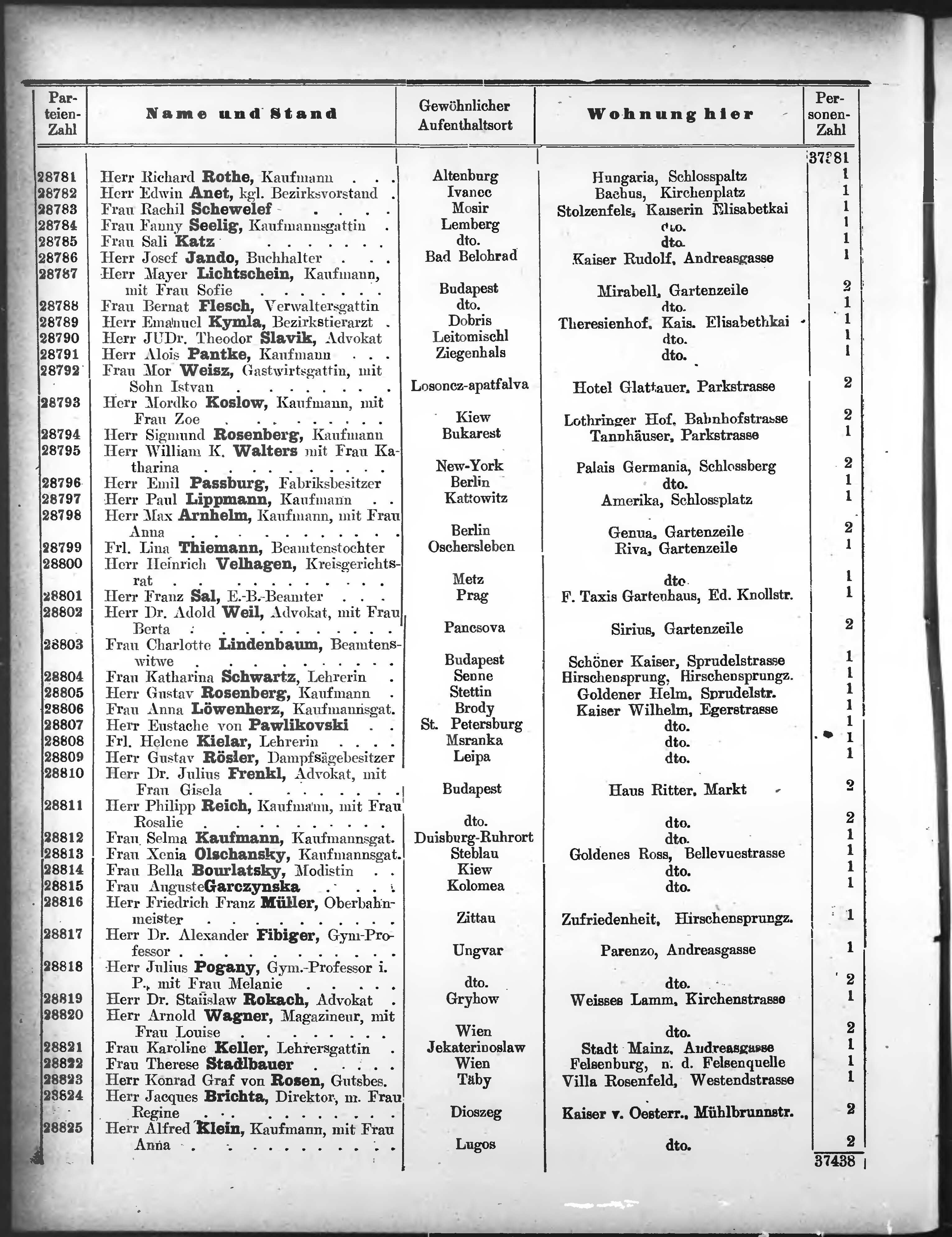 Liste der P.T. Curgäste in Carlsbad ...