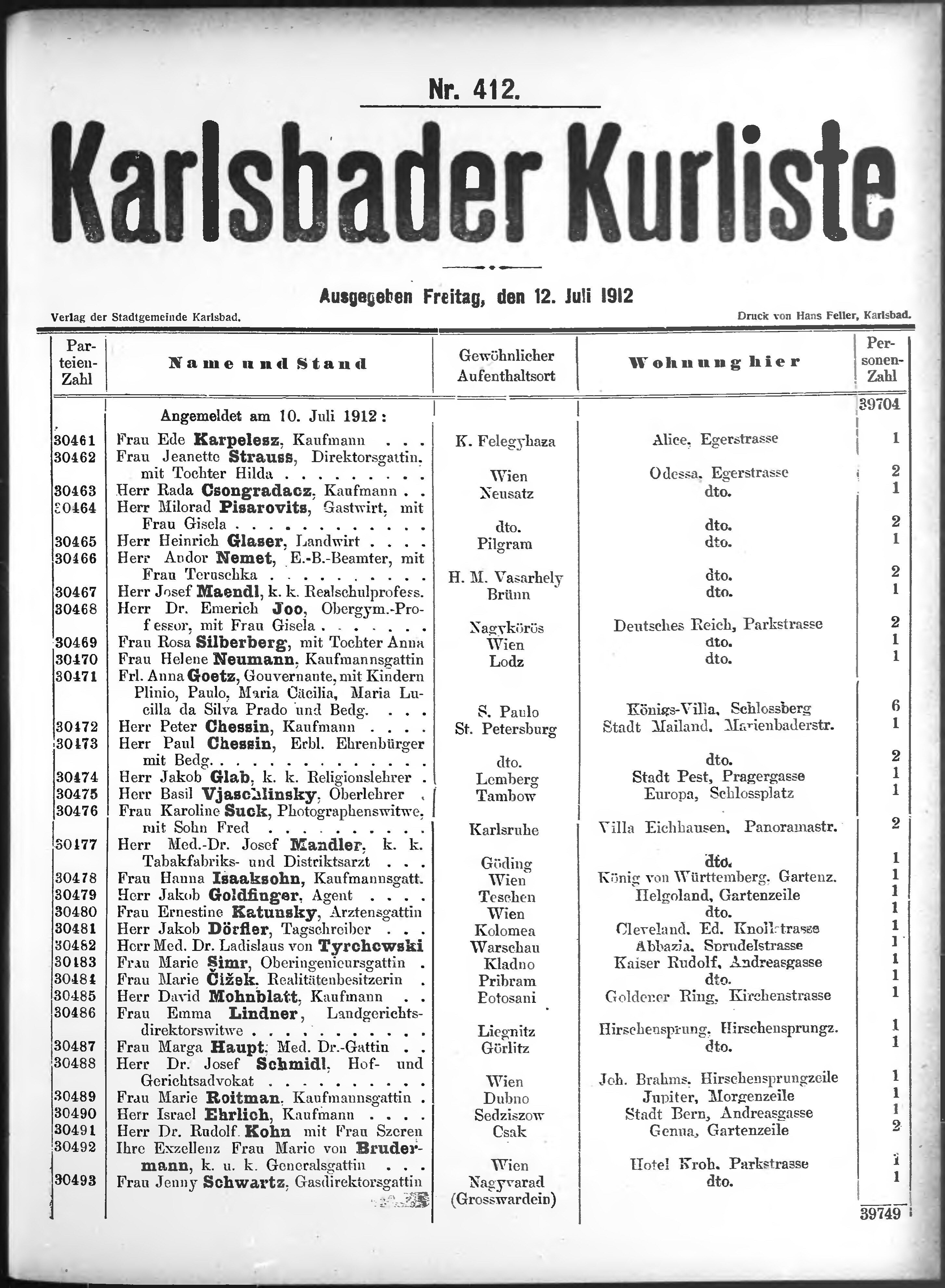 Liste der P.T. Curgäste in Carlsbad ...