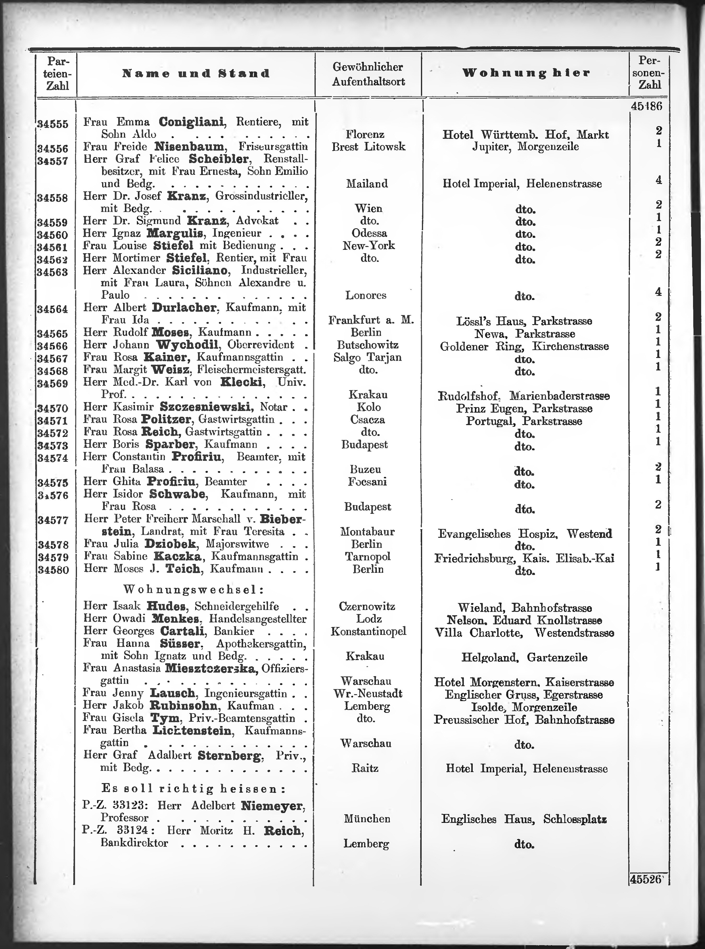 Liste der P.T. Curgäste in Carlsbad ...