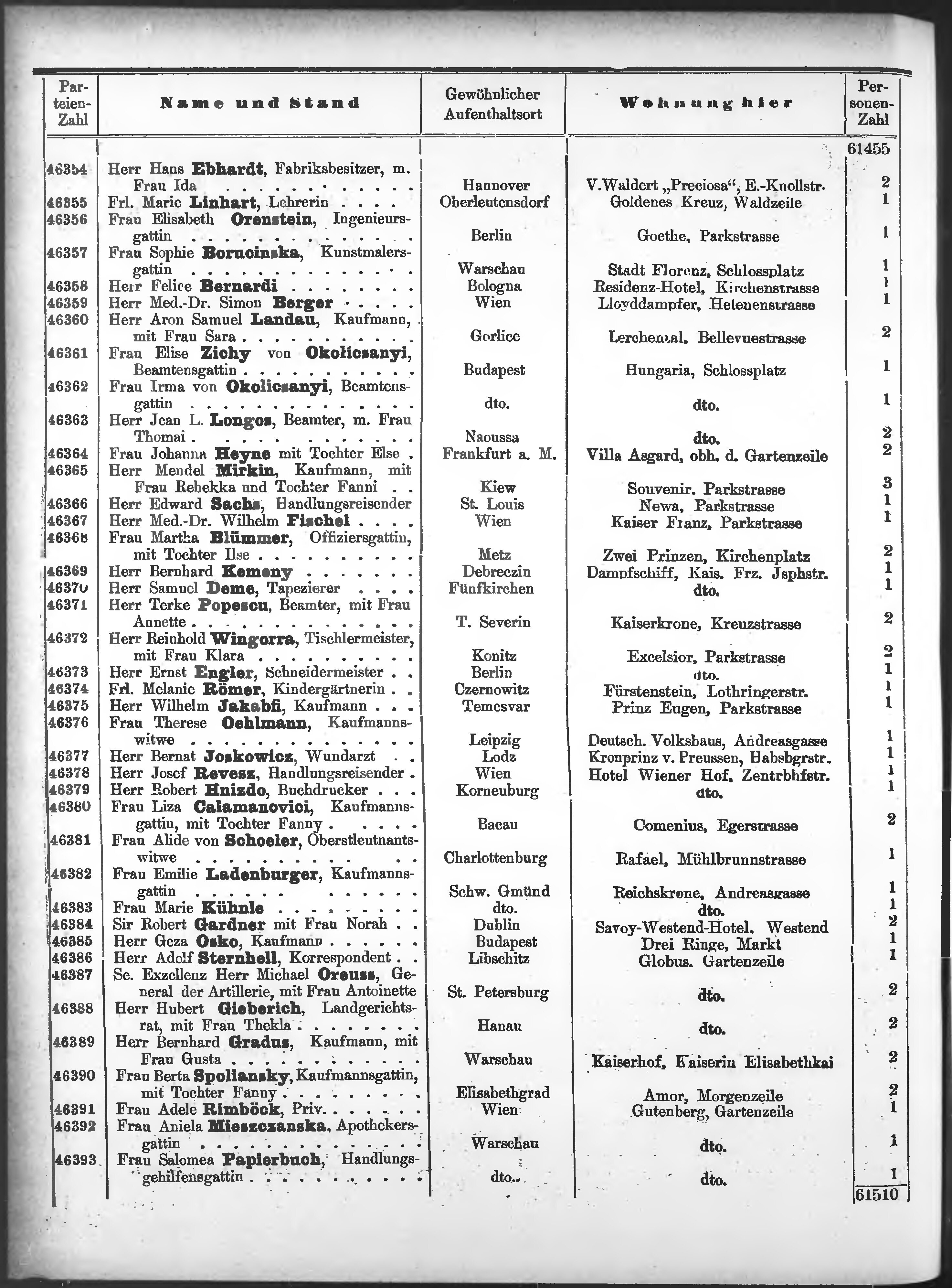 Liste der P.T. Curgäste in Carlsbad ...