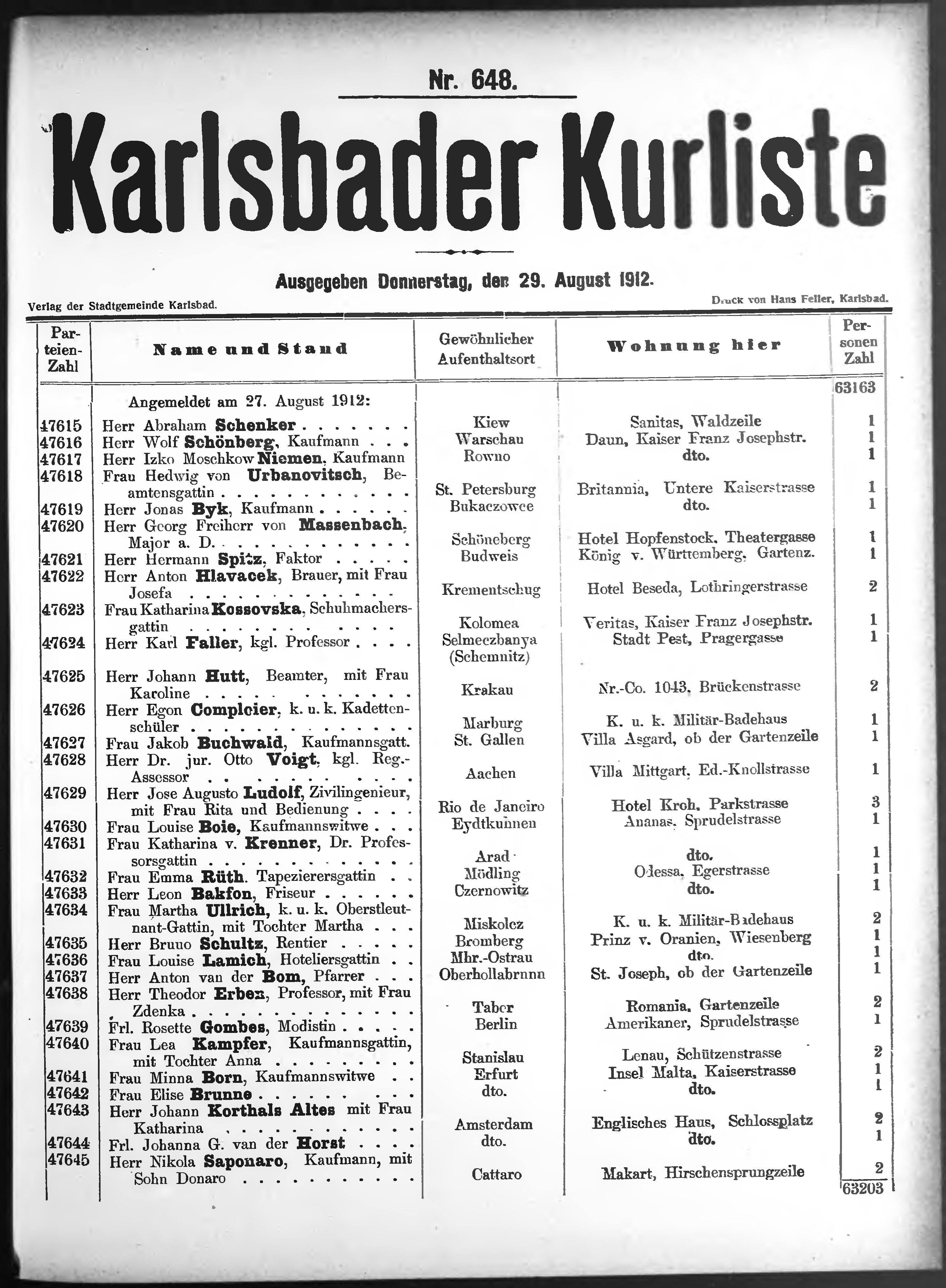 Liste der P.T. Curgäste in Carlsbad ...