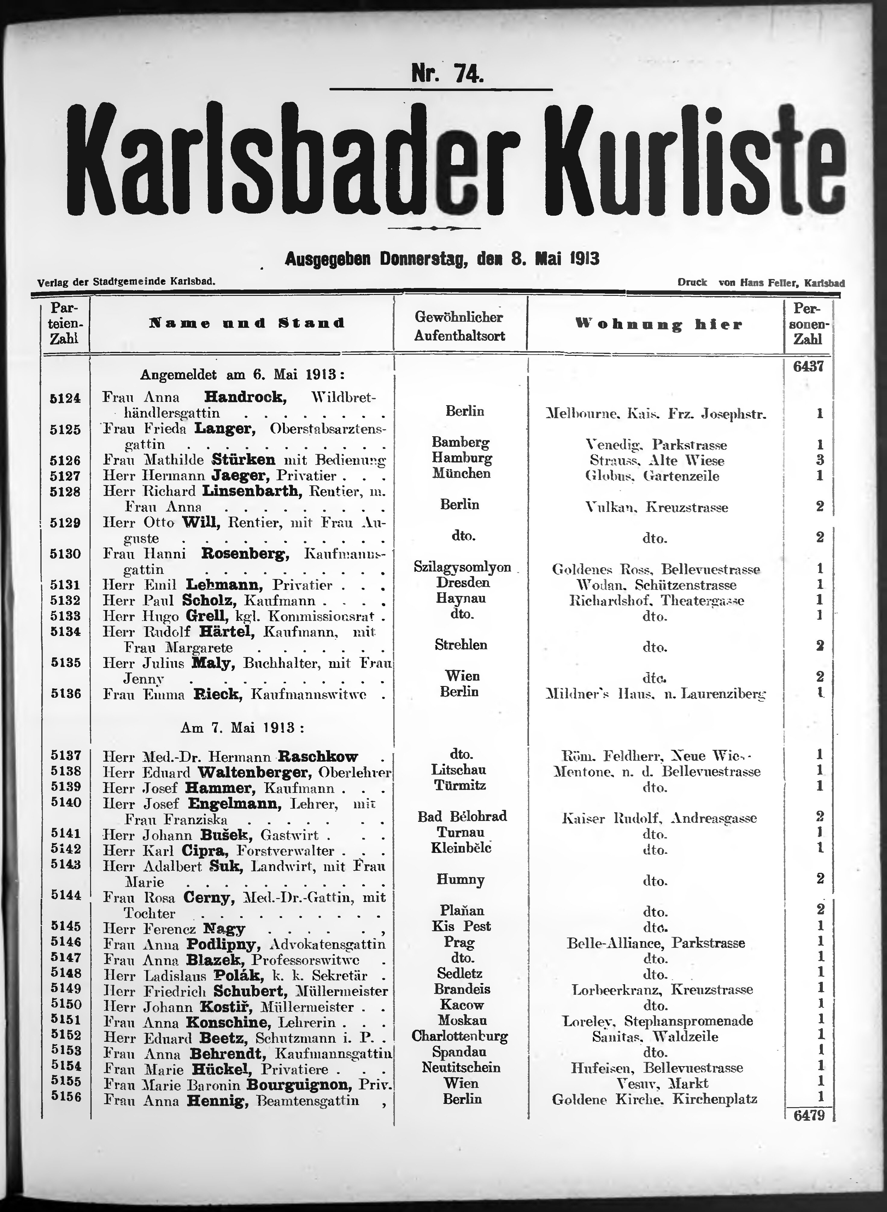 Liste der P.T. Curgäste in Carlsbad ...