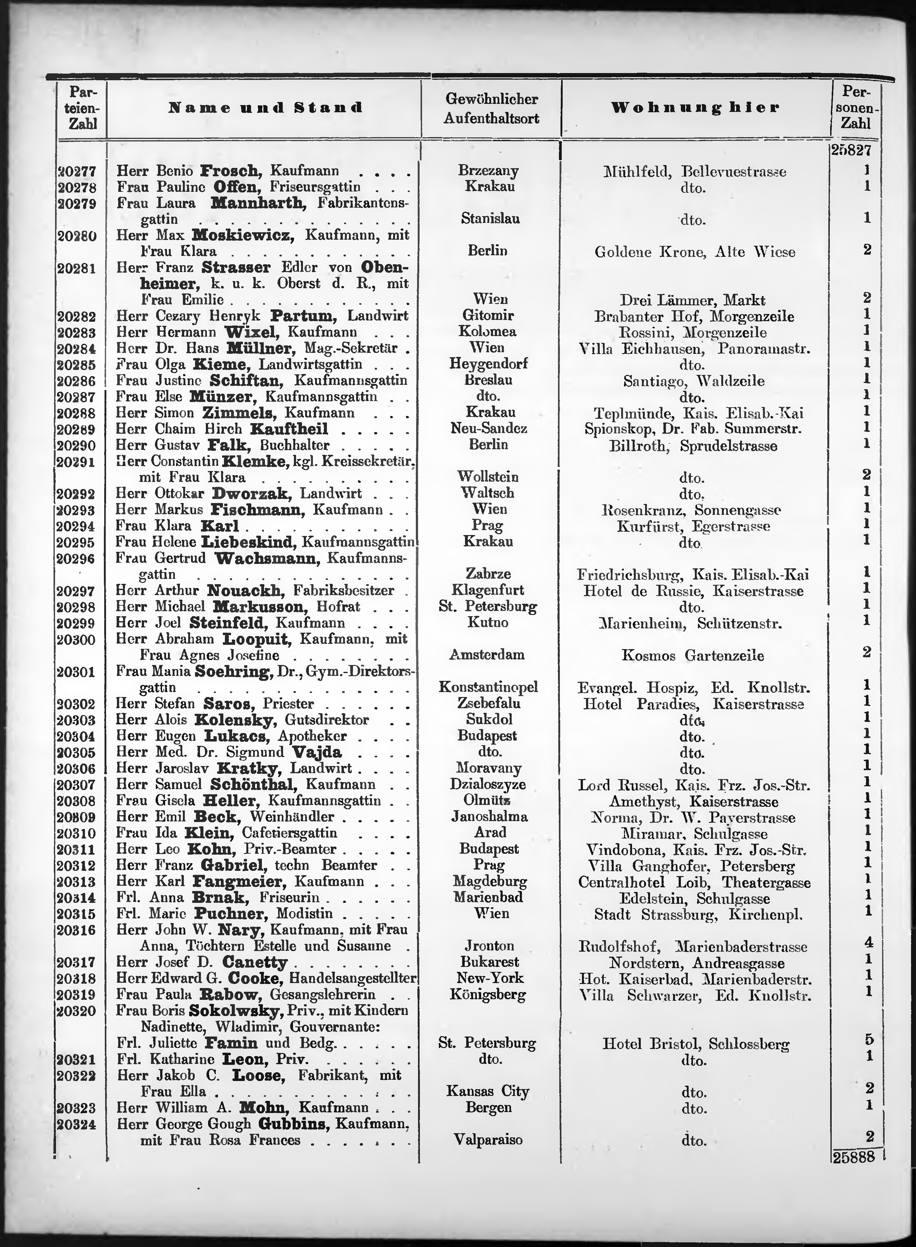 Liste der P.T. Curgäste in Carlsbad ...