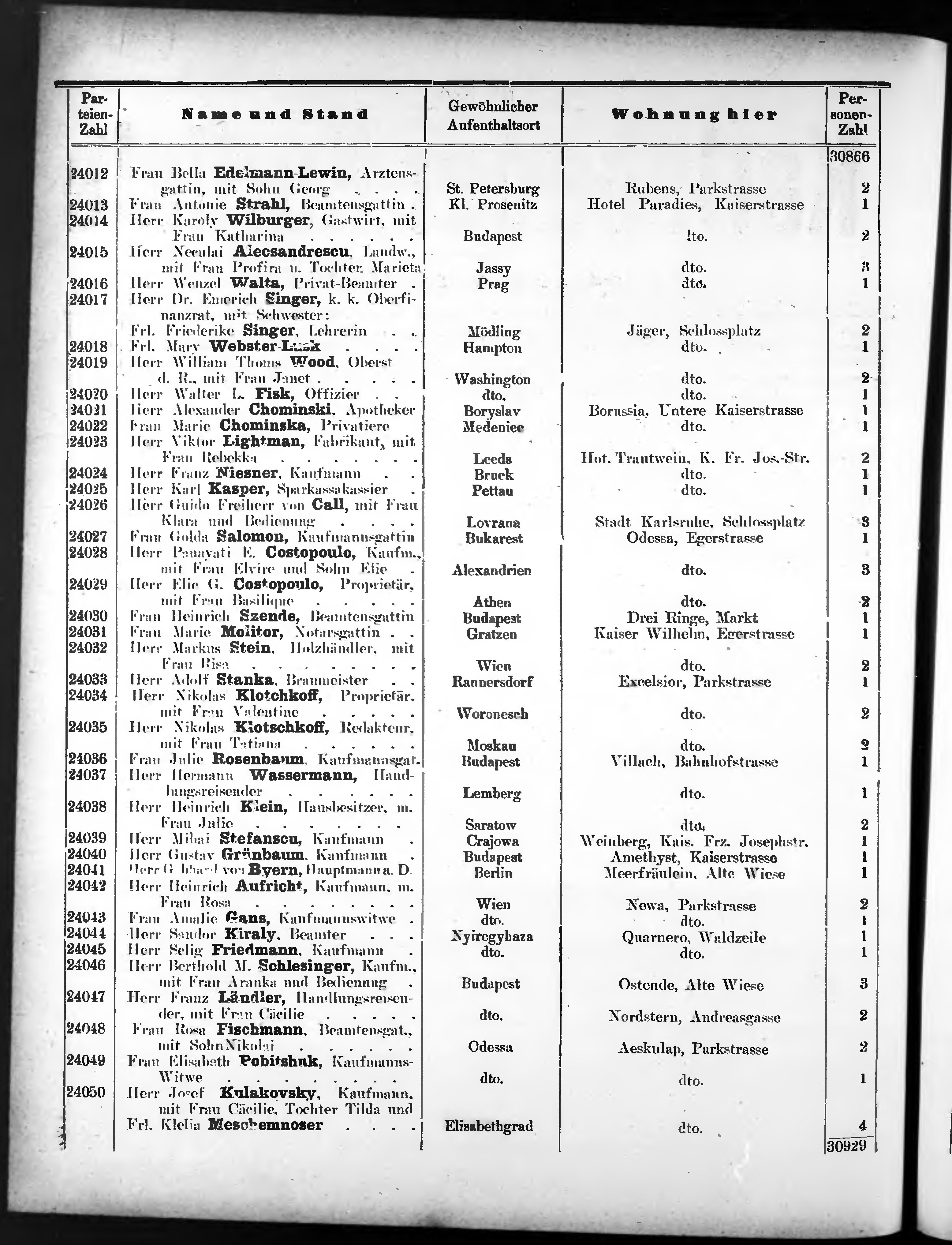 Liste der P.T. Curgäste in Carlsbad ...