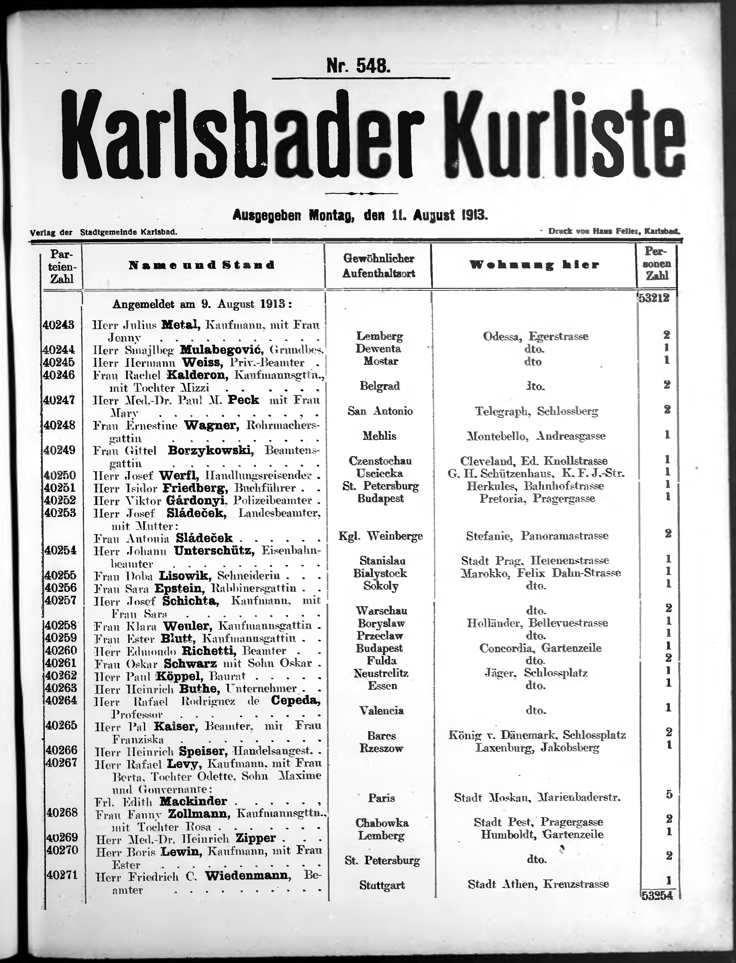 Liste der P.T. Curgäste in Carlsbad ...