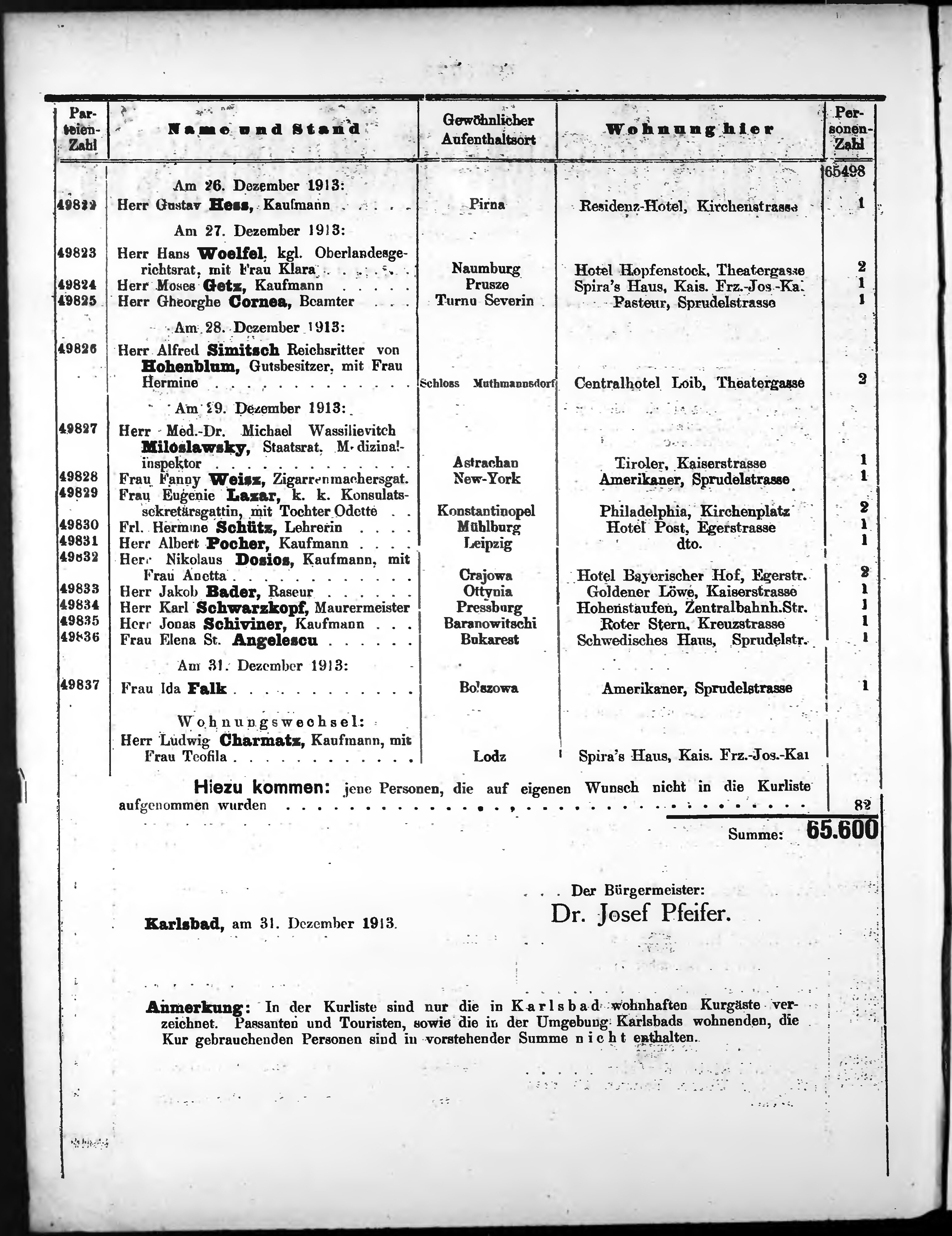 Liste der P.T. Curgäste in Carlsbad ...