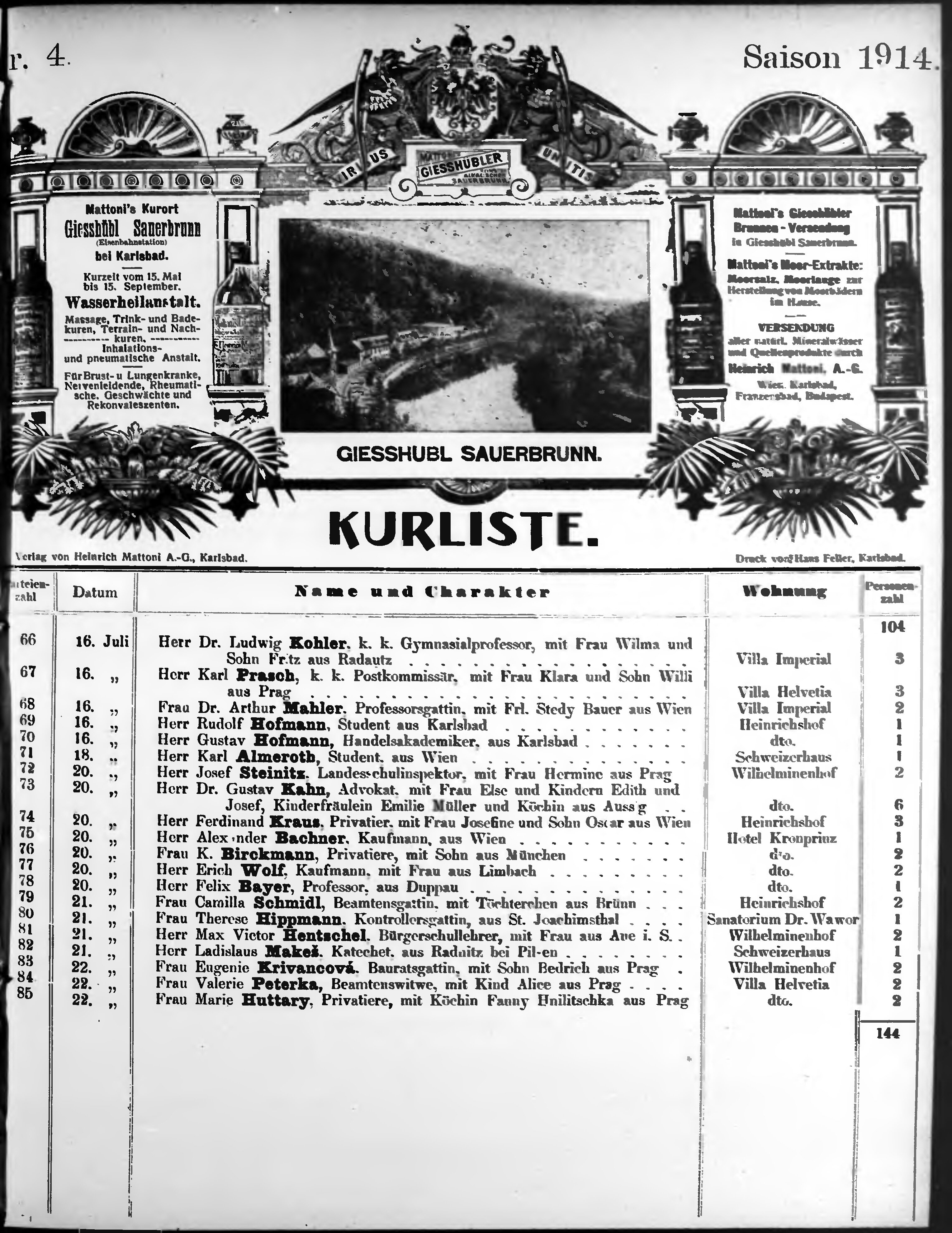 Liste der im Jahre ... angekommenen und abgereisten Kur- und Badegäste in Karlsb...
