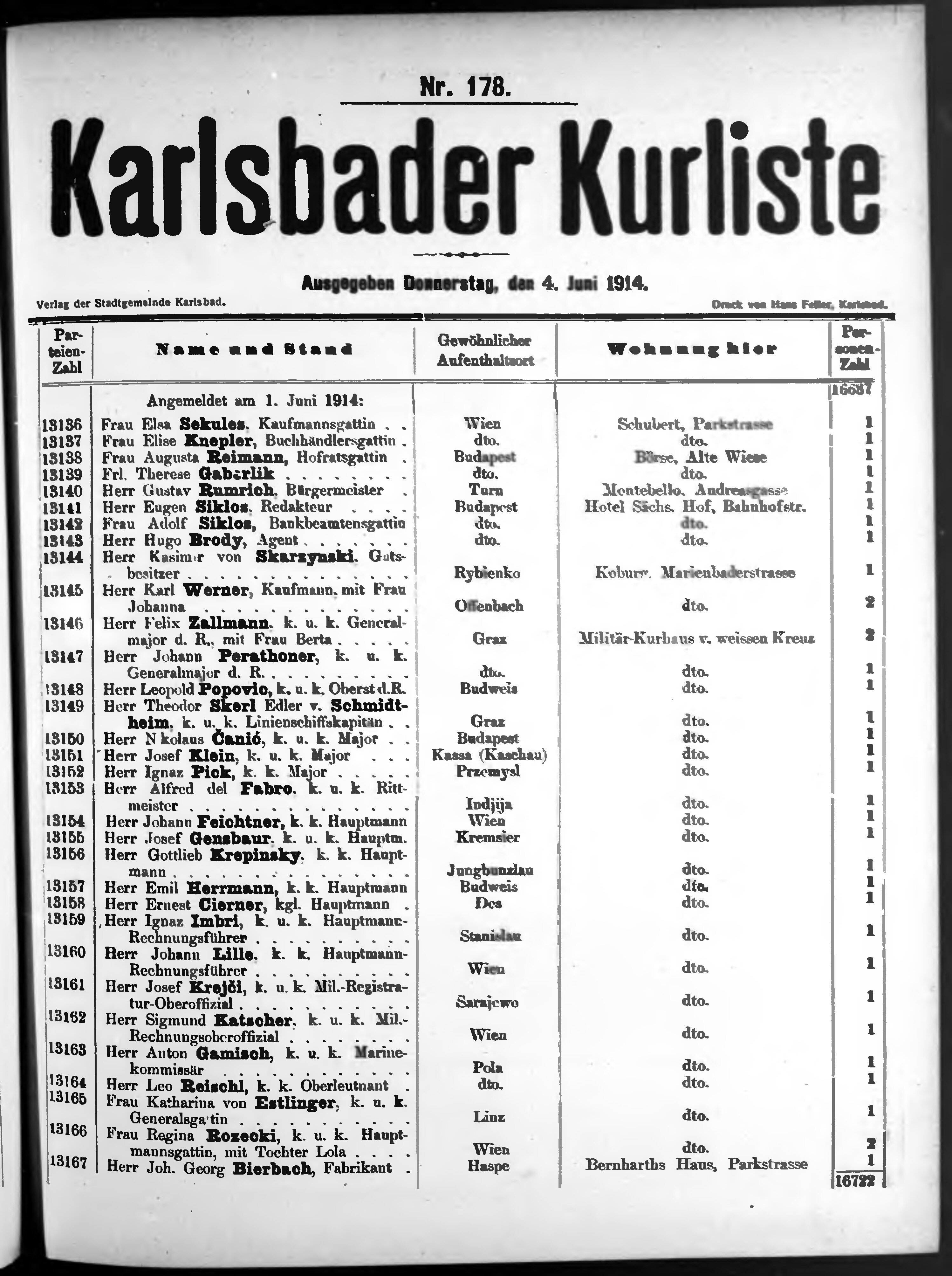 Liste der im Jahre ... angekommenen und abgereisten Kur- und Badegäste in Karlsb...