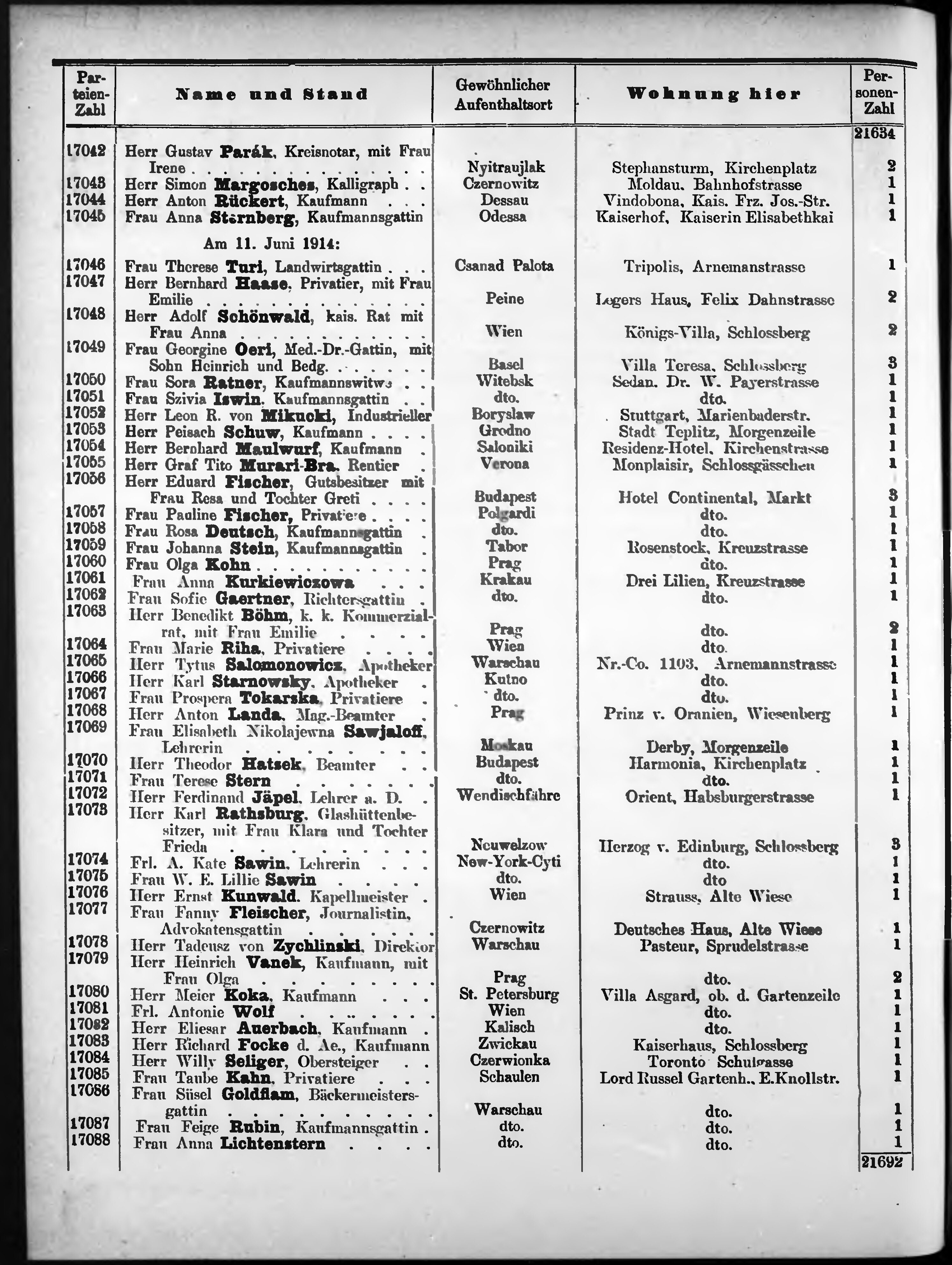 Liste der P.T. Curgäste in Carlsbad ...