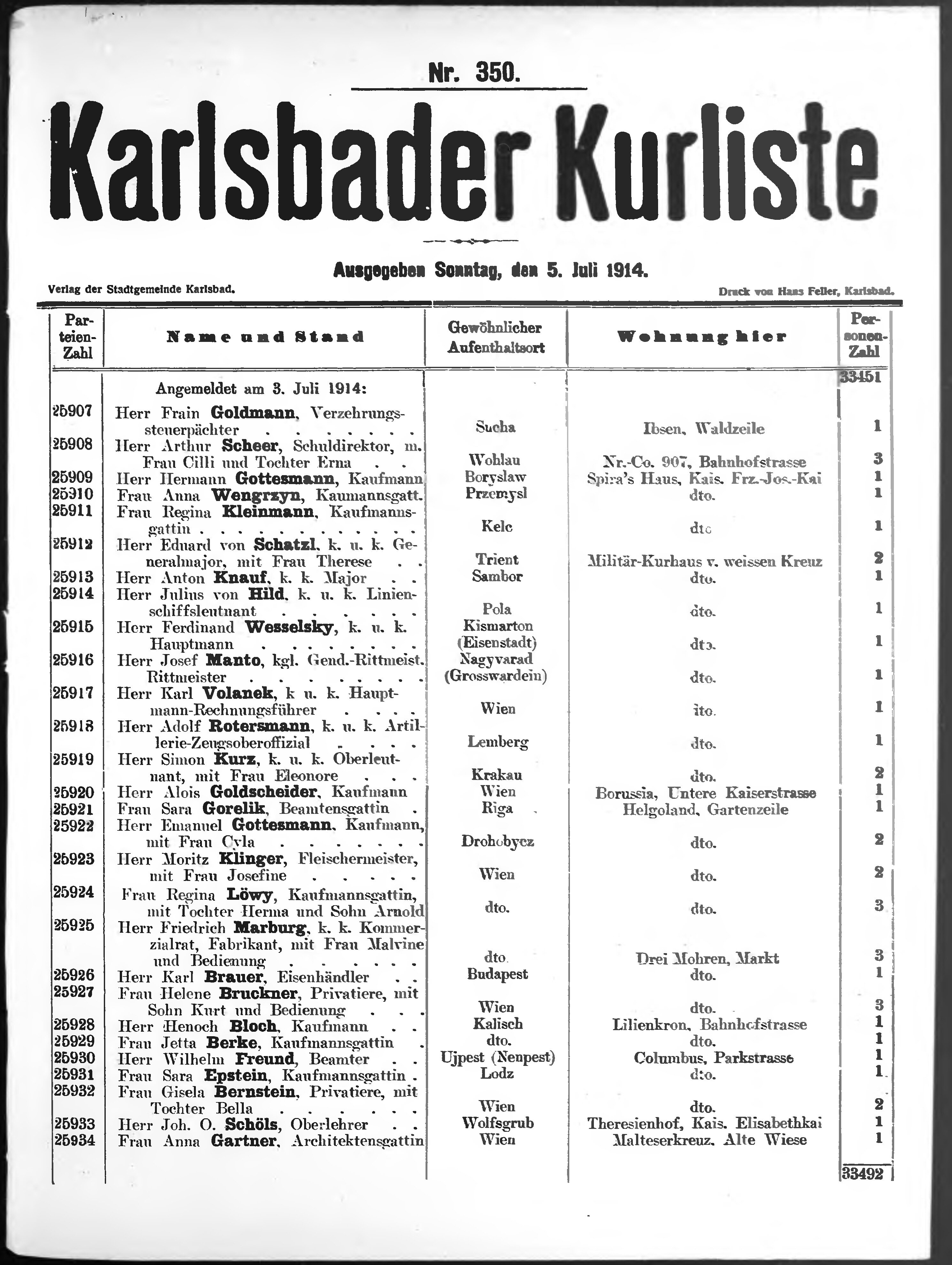 Liste der im Jahre ... angekommenen und abgereisten Kur- und Badegäste in Karlsb...