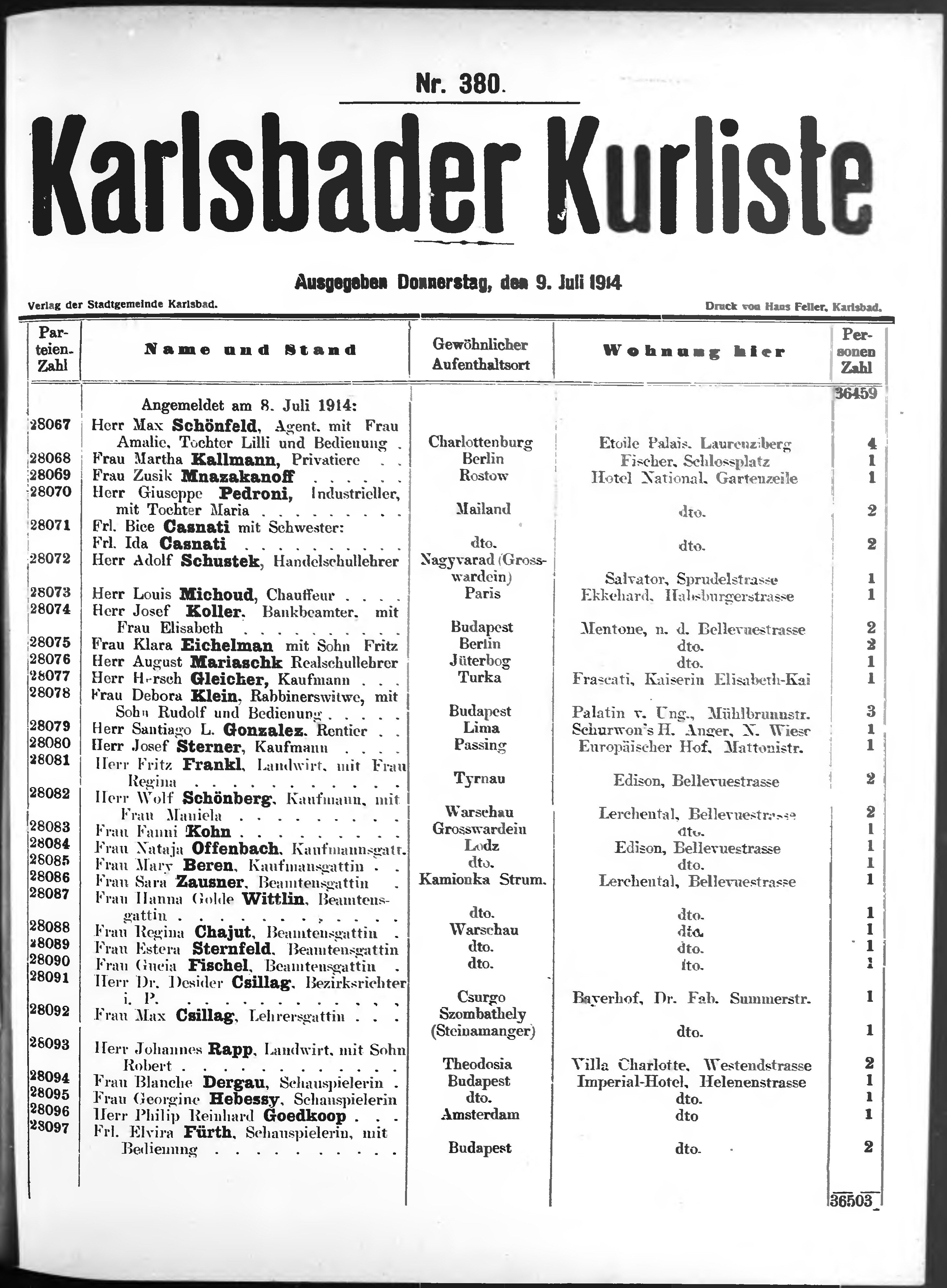 Liste der im Jahre ... angekommenen und abgereisten Kur- und Badegäste in Karlsb...