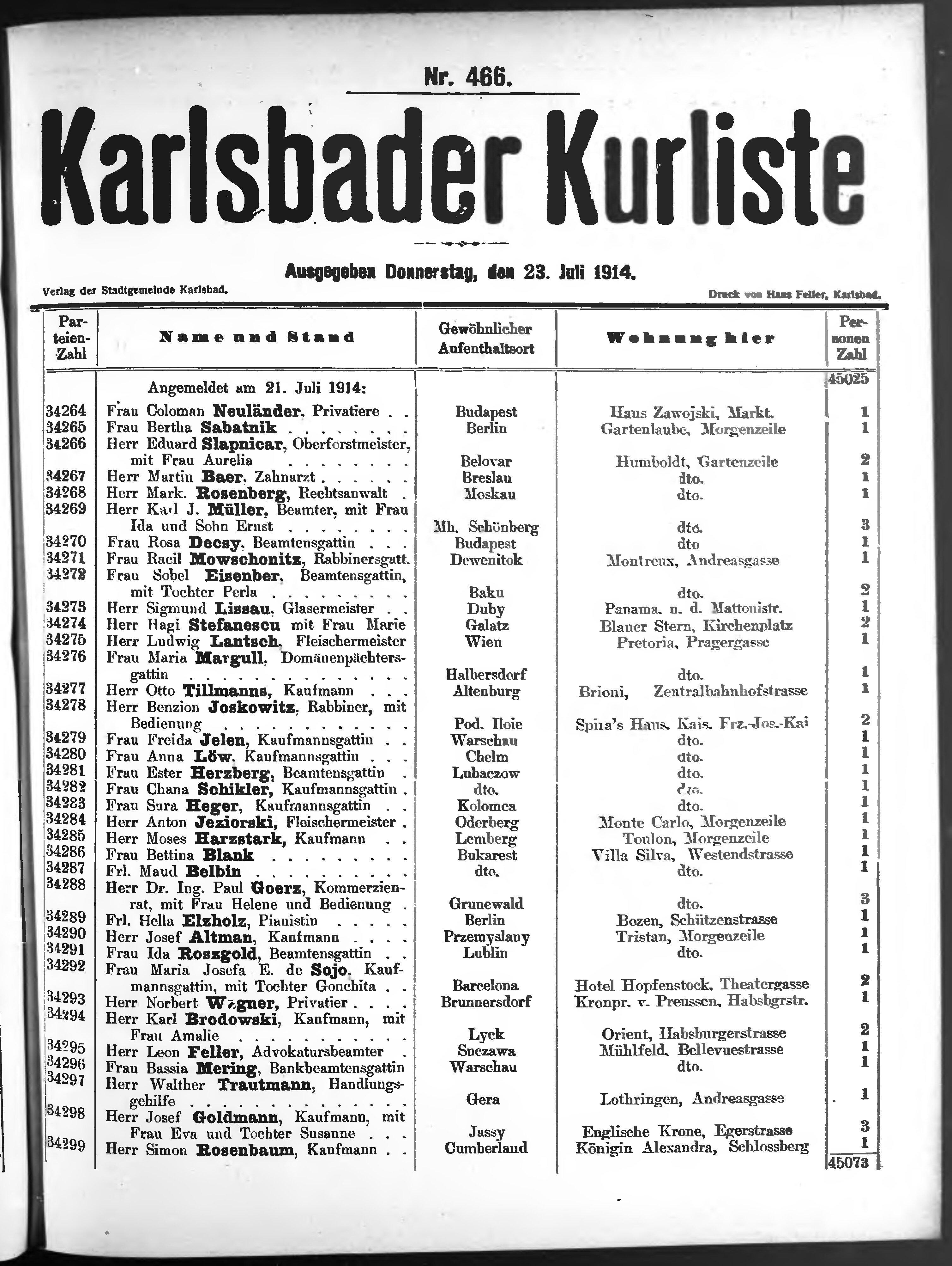 Liste der P.T. Curgäste in Carlsbad ...