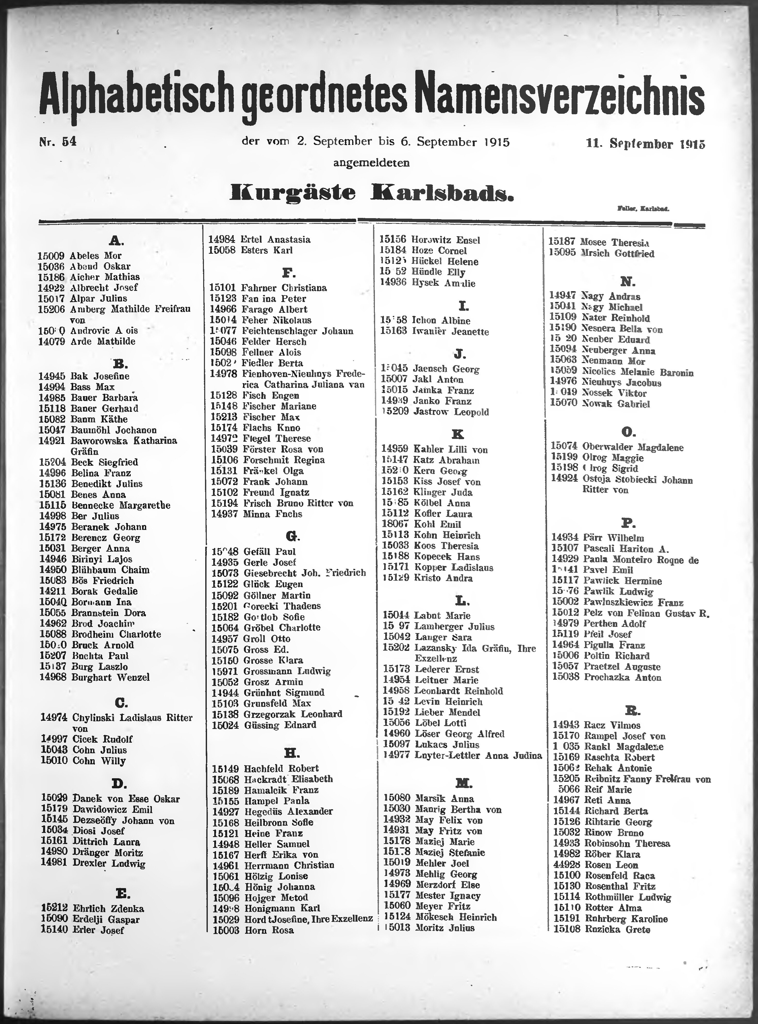 Liste der im Jahre ... angekommenen und abgereisten Kur- und Badegäste in Karlsb...