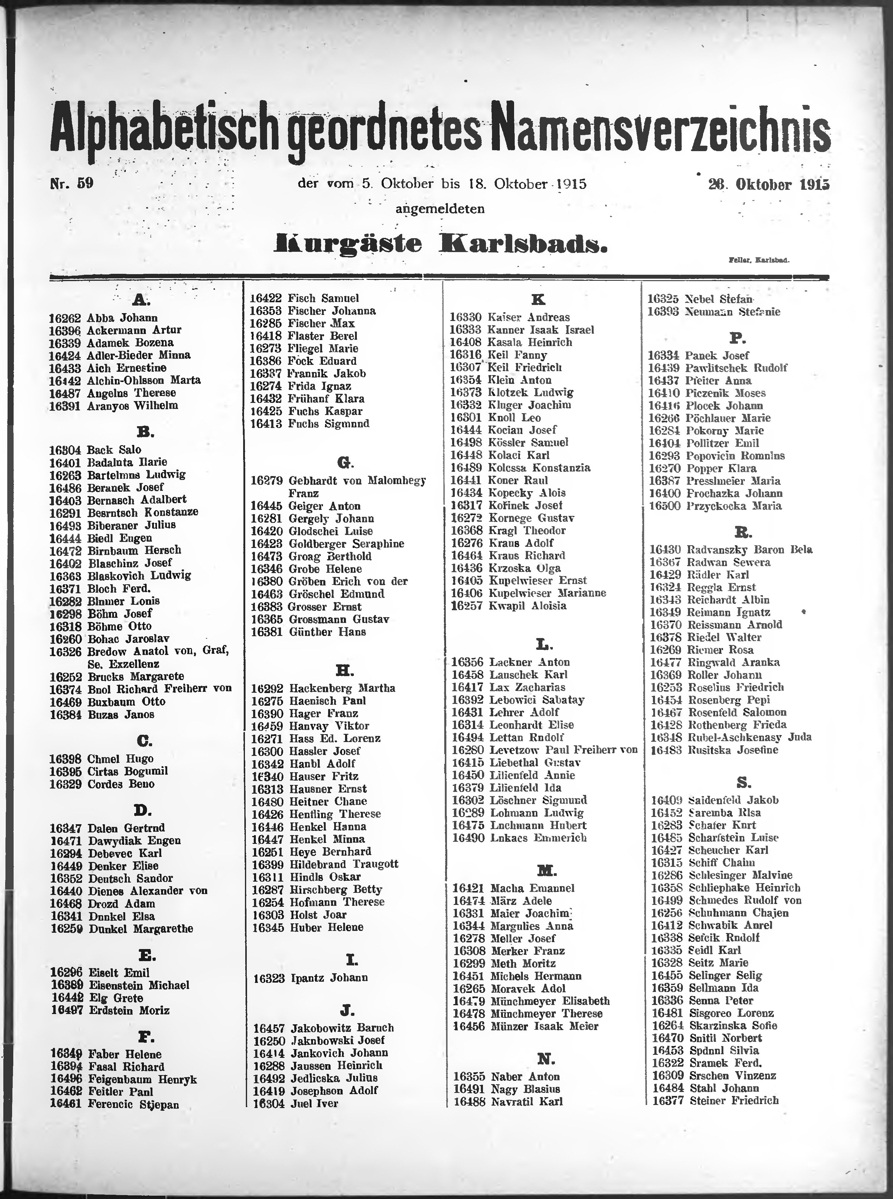 Liste der im Jahre ... angekommenen und abgereisten Kur- und Badegäste in Karlsb...