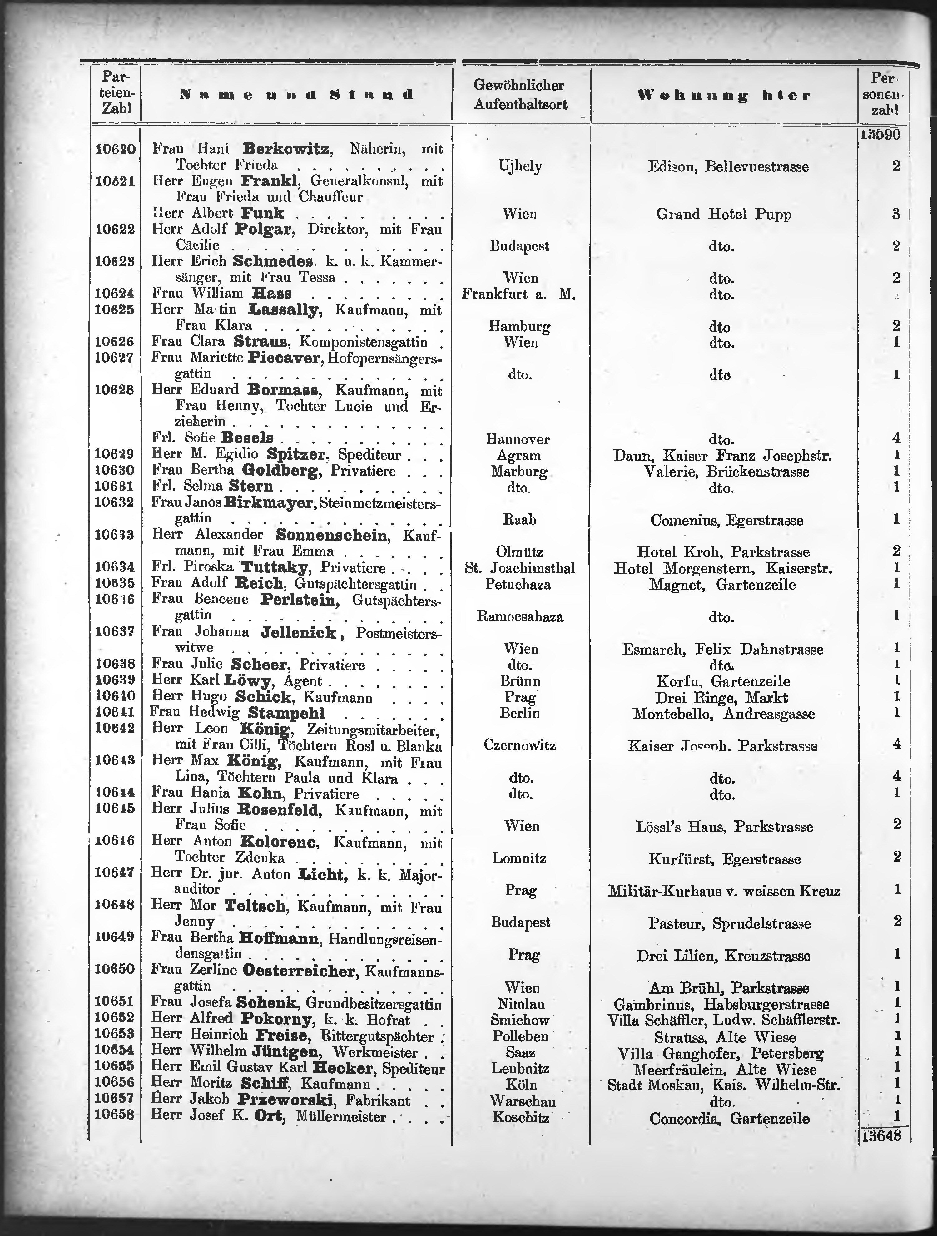 Liste der P.T. Curgäste in Carlsbad ...