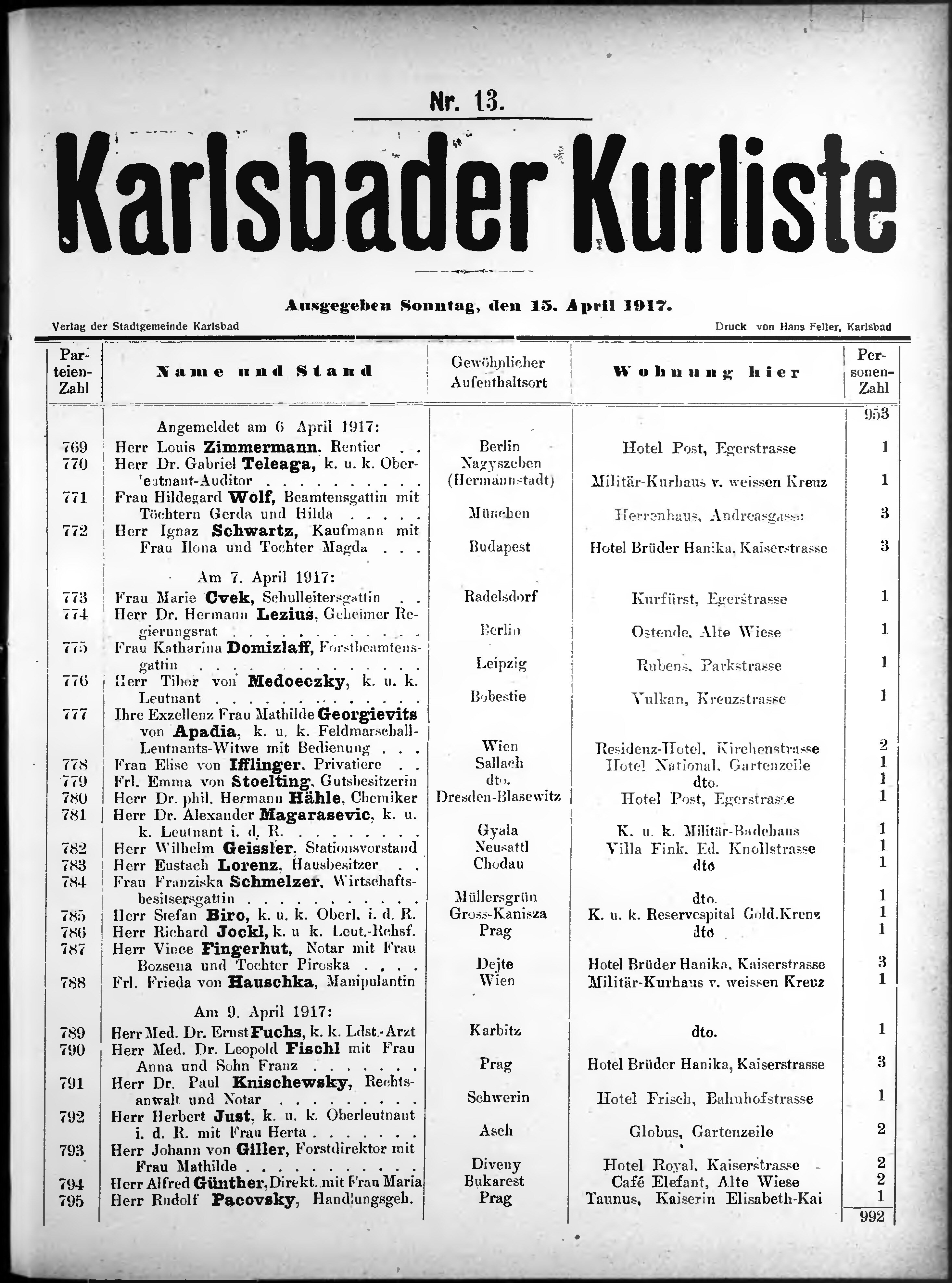 Liste der P.T. Curgäste in Carlsbad ...