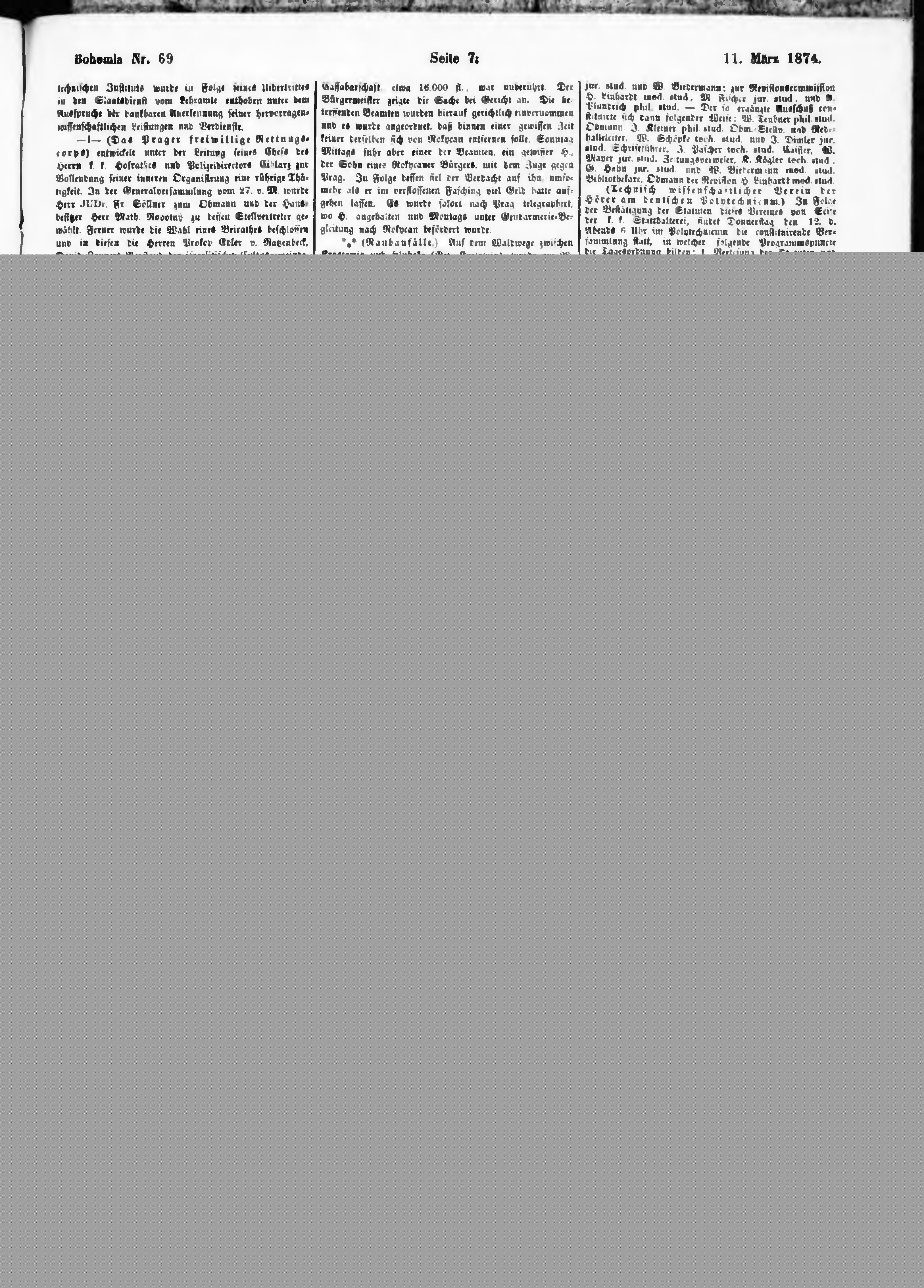 * Datum vydání výtisku: 11.3.1874 Číslo výtisku: 69
