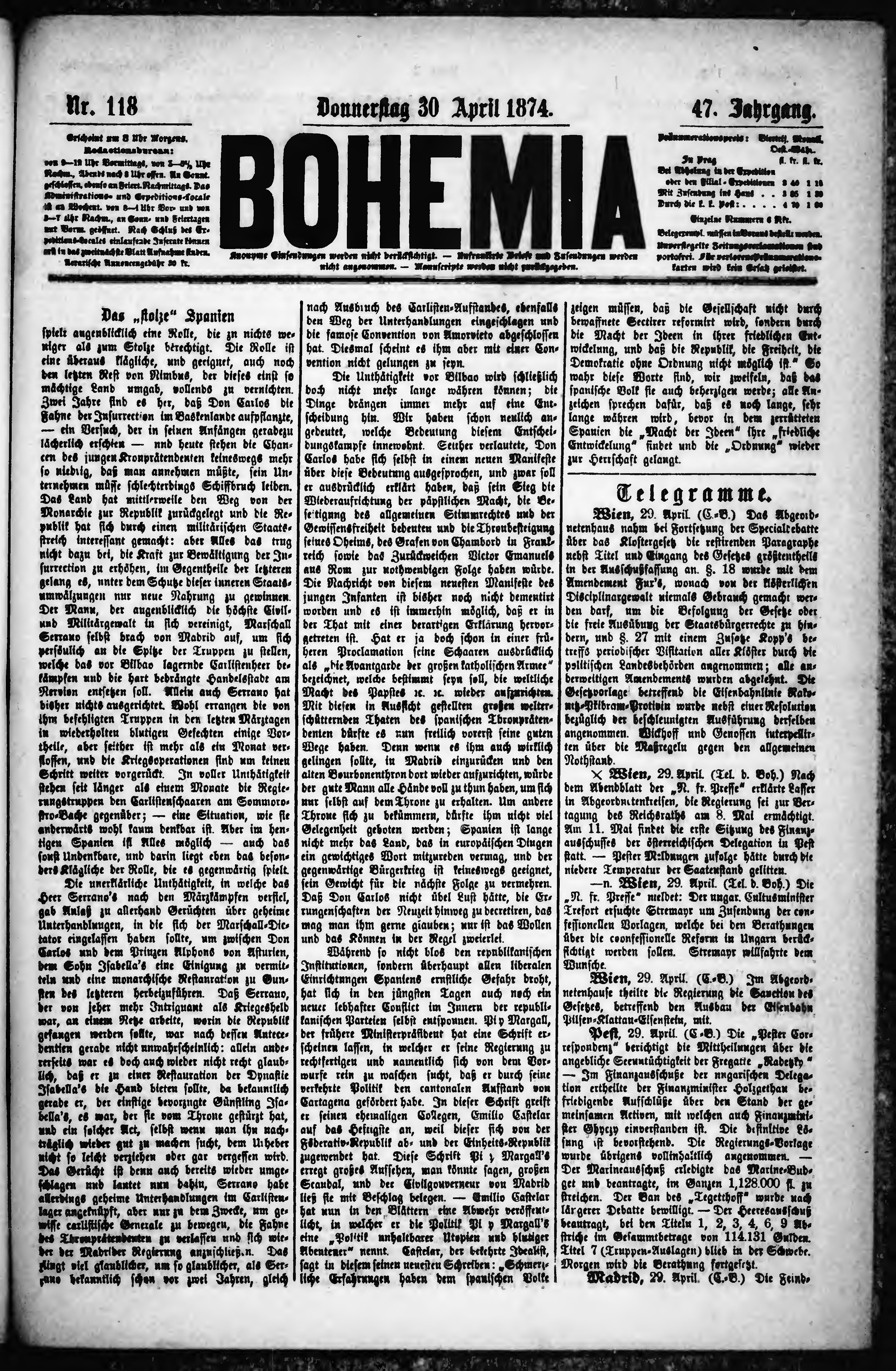 * Datum vydání výtisku: 30.4.1874 Číslo výtisku: 118