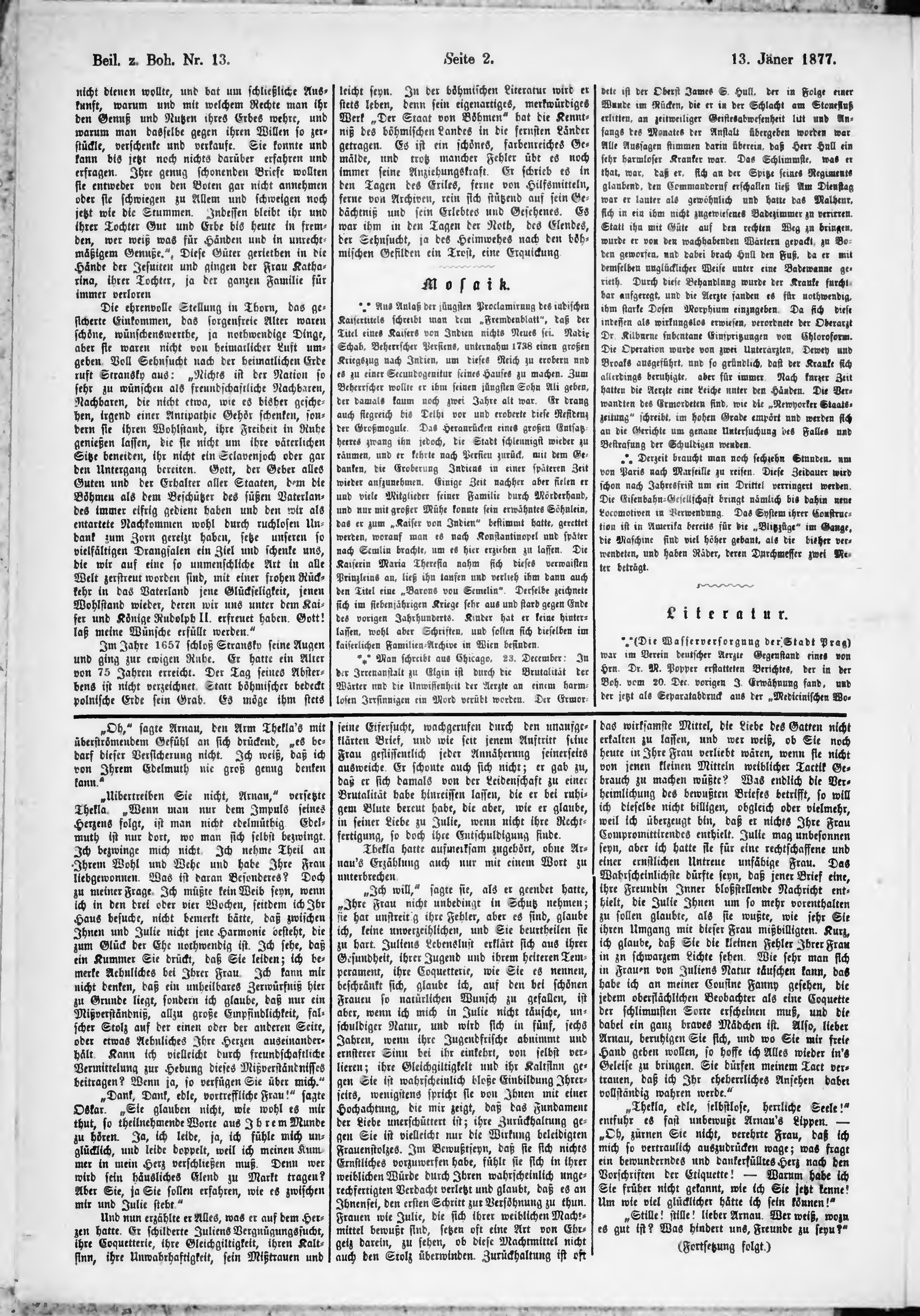 * Datum vydání výtisku: 13.1.1877 Číslo výtisku: 13 Typ výtisku: příloha
