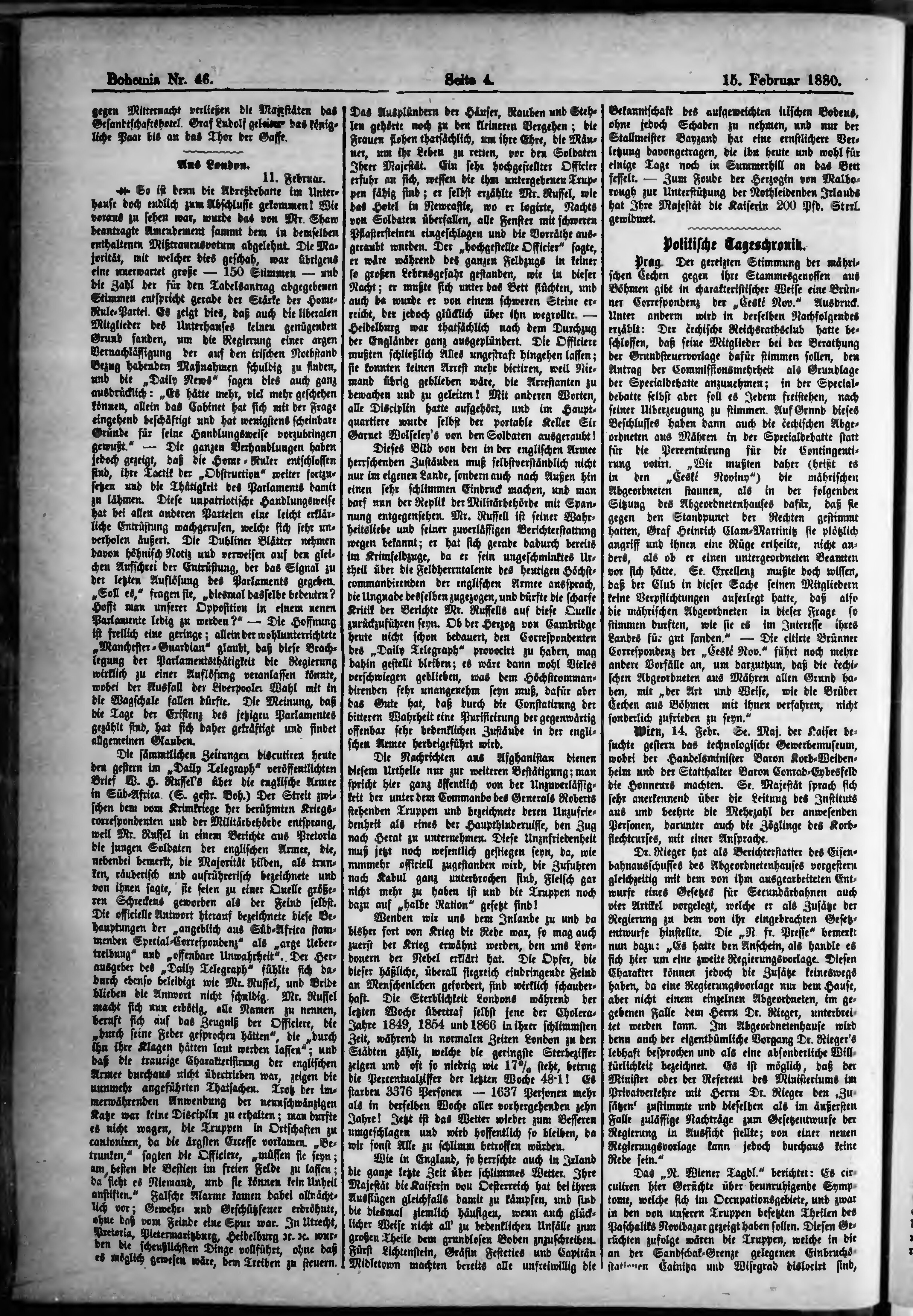 * Datum vydání výtisku: 15.2.1880 Číslo výtisku: 46
