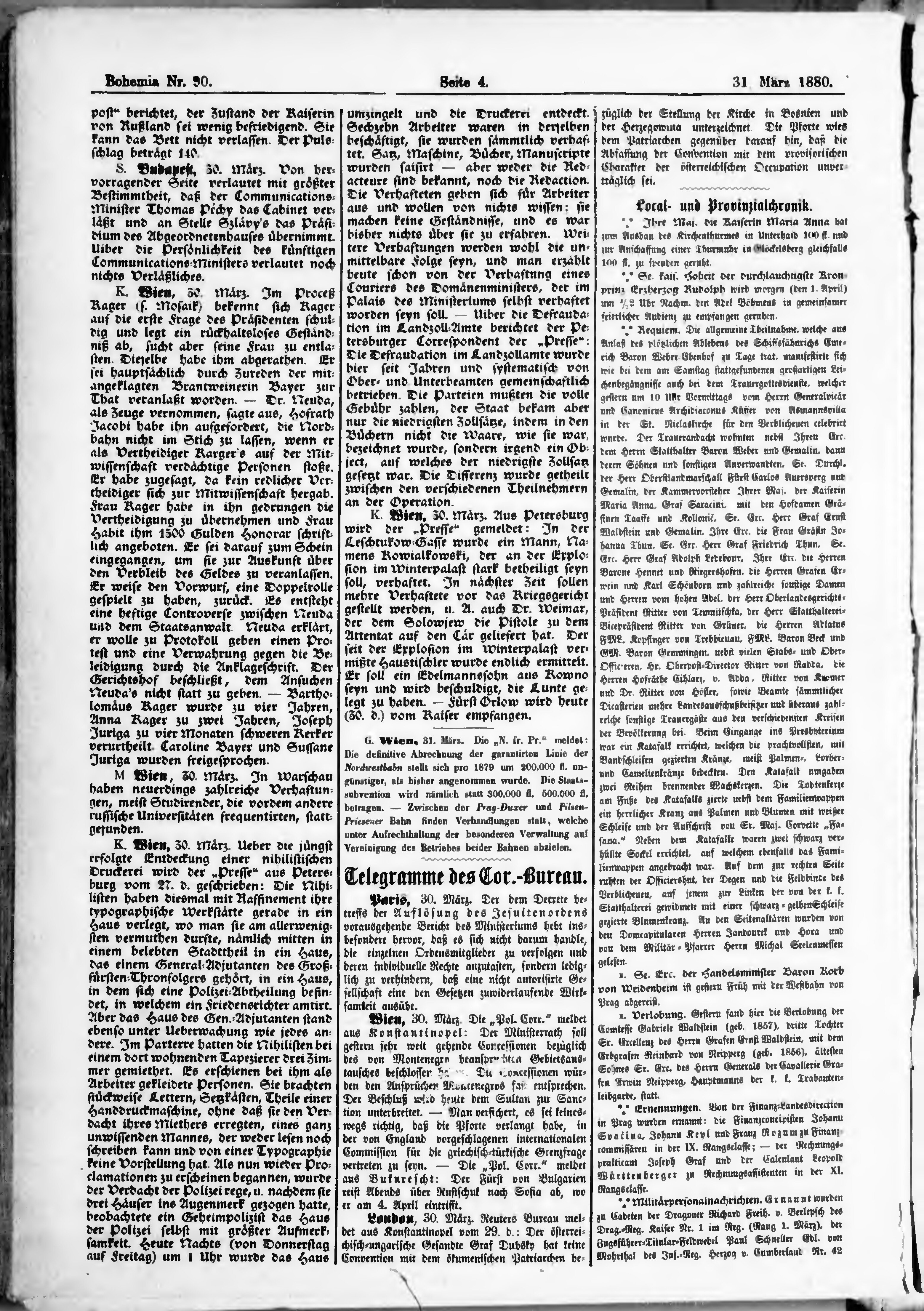 * Datum vydání výtisku: 31.3.1880 Číslo výtisku: 90